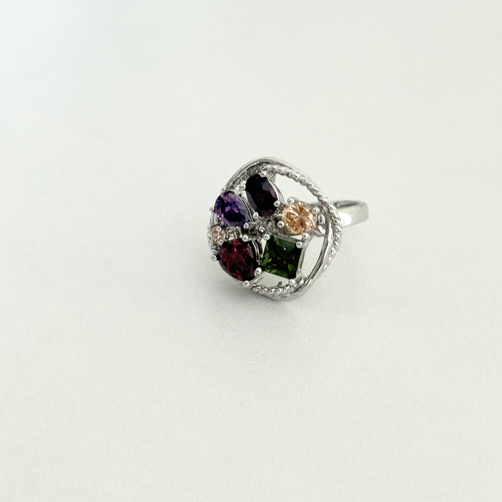 как выглядит 925 Sterling Silver Multi Gemstone Ladies Band Ring Size 6 фото