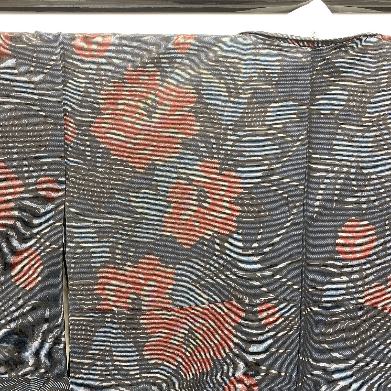 как выглядит Japanese Vintage Kimono Silk Navy Oshima Tumugi Traditional Authentic Length61in фото