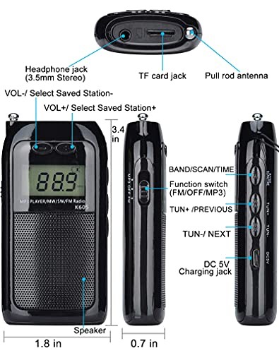 как выглядит Portable Radio FM AM Shortwave Walkman with Speaker and Backlit, MP3 Player фото