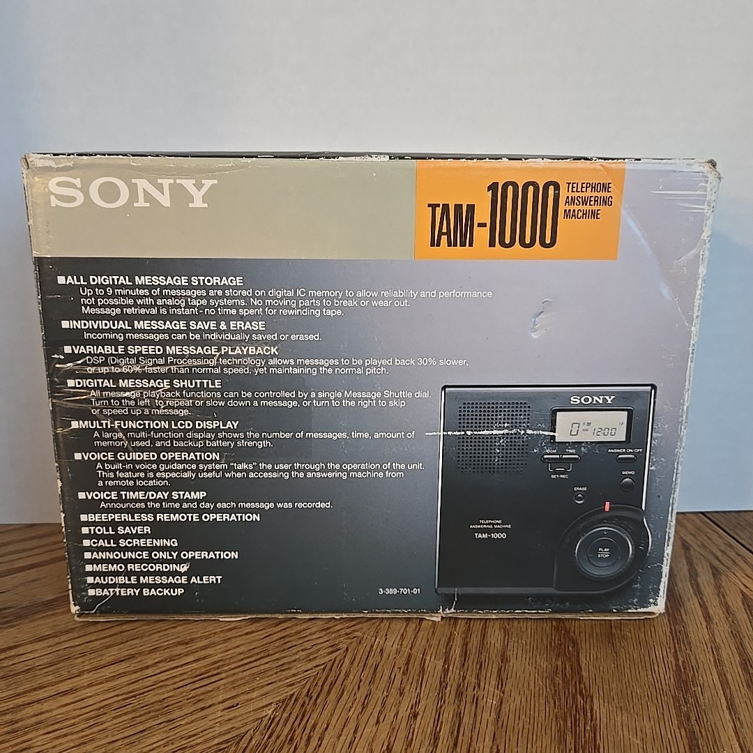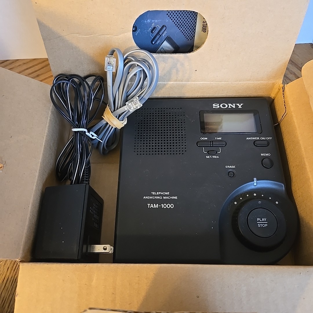 как выглядит Sony TAM-1000 Telephone Answering Machine In Box With Power And Connector Cords фото