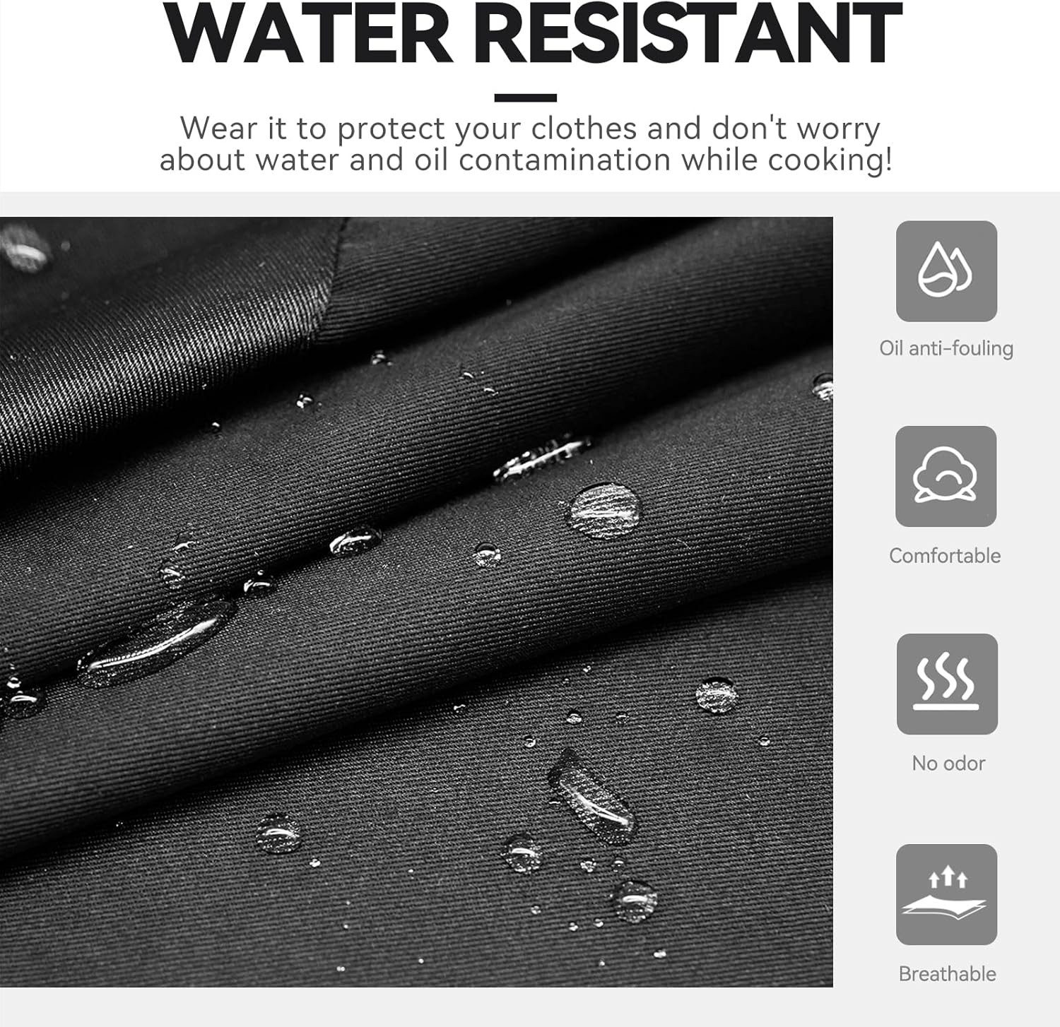 Adjustable Black Kitchen Apron with 3 Pockets for Men Women Chef
