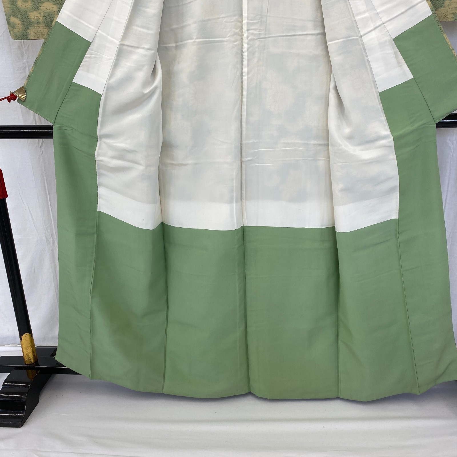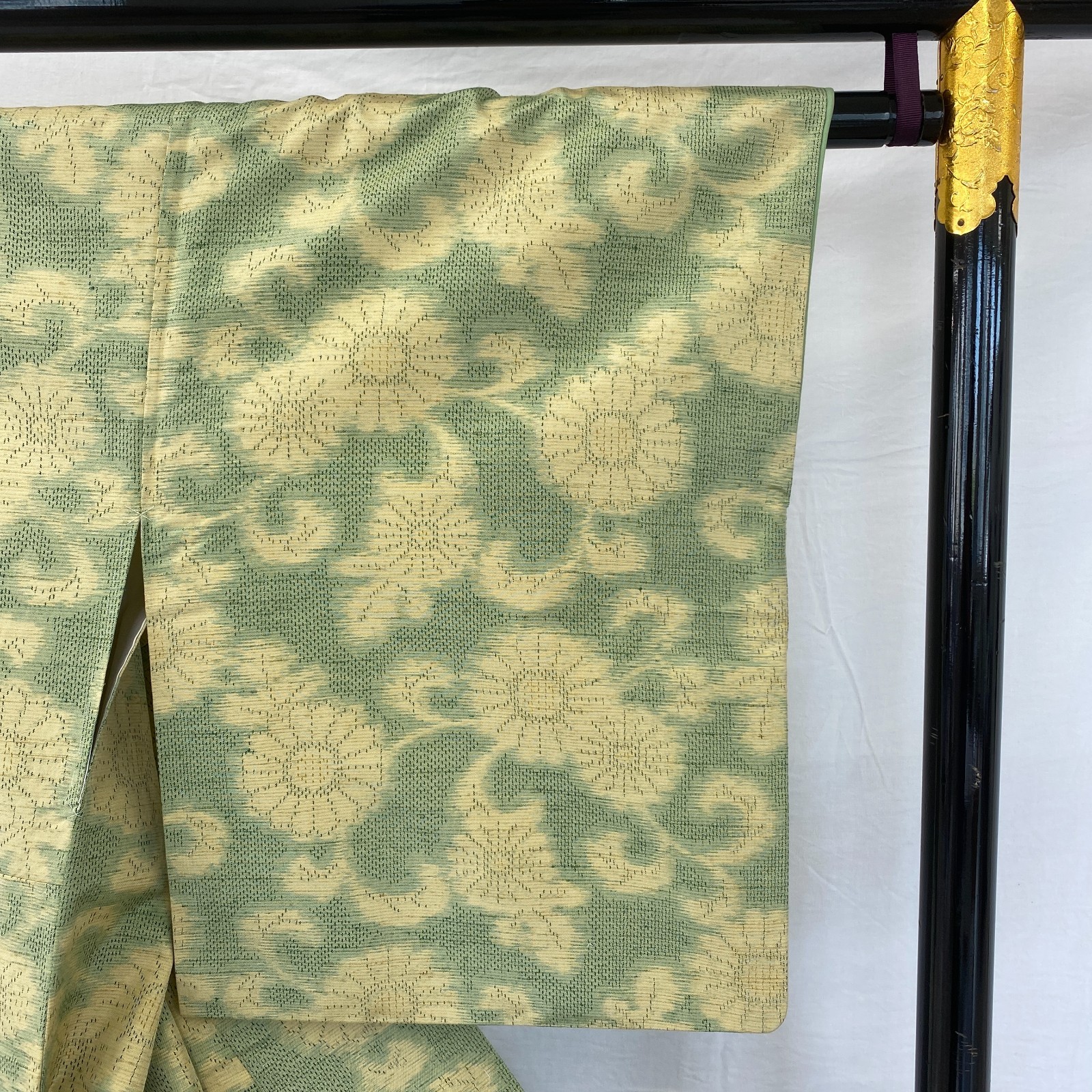как выглядит Japanese Vintage Kimono Silk Green Tsumugi Traditional Authentic Length62in фото