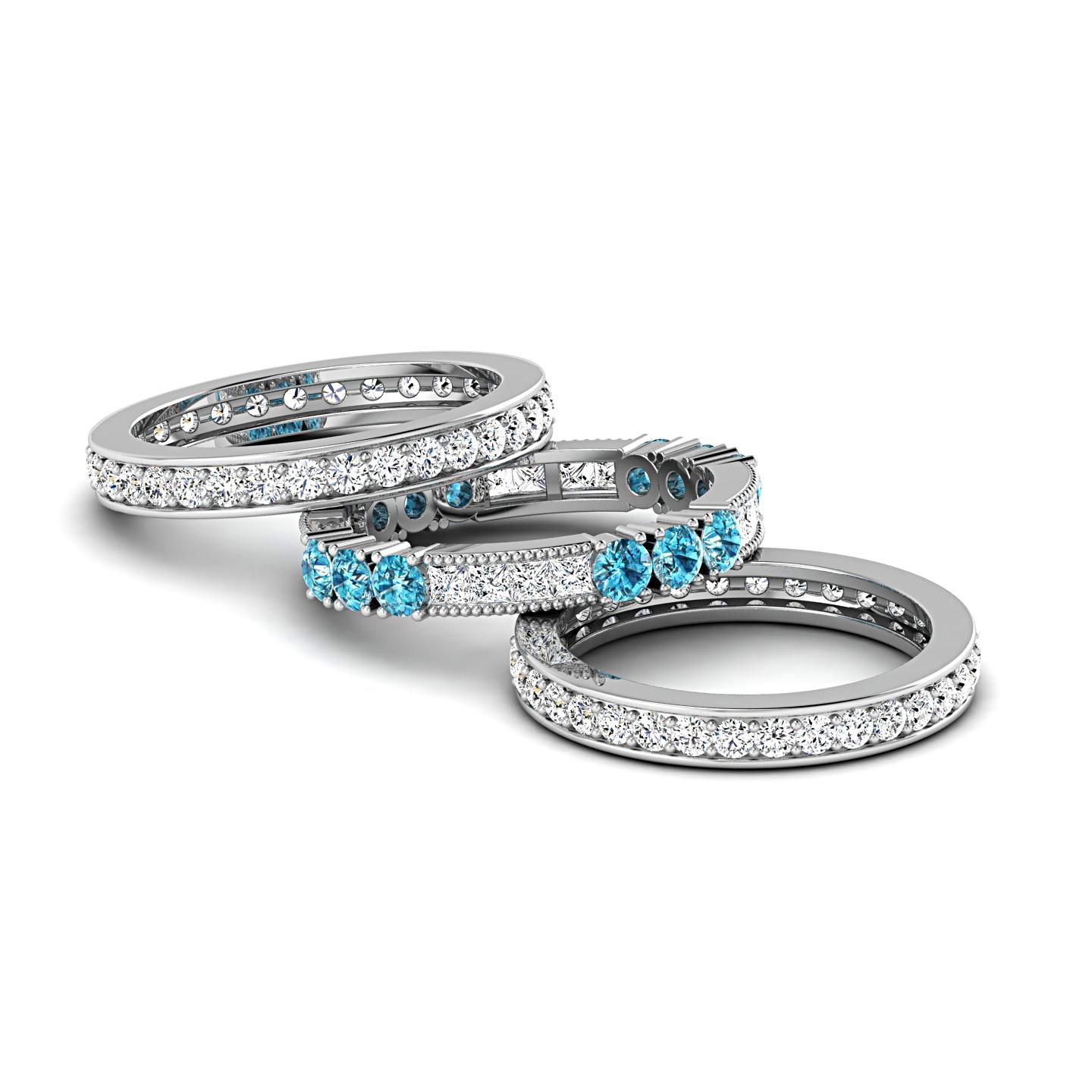 Swiss Blue Topaz Eternity Bands 925 Sterling Silver Engagement Ring Wedding Gift