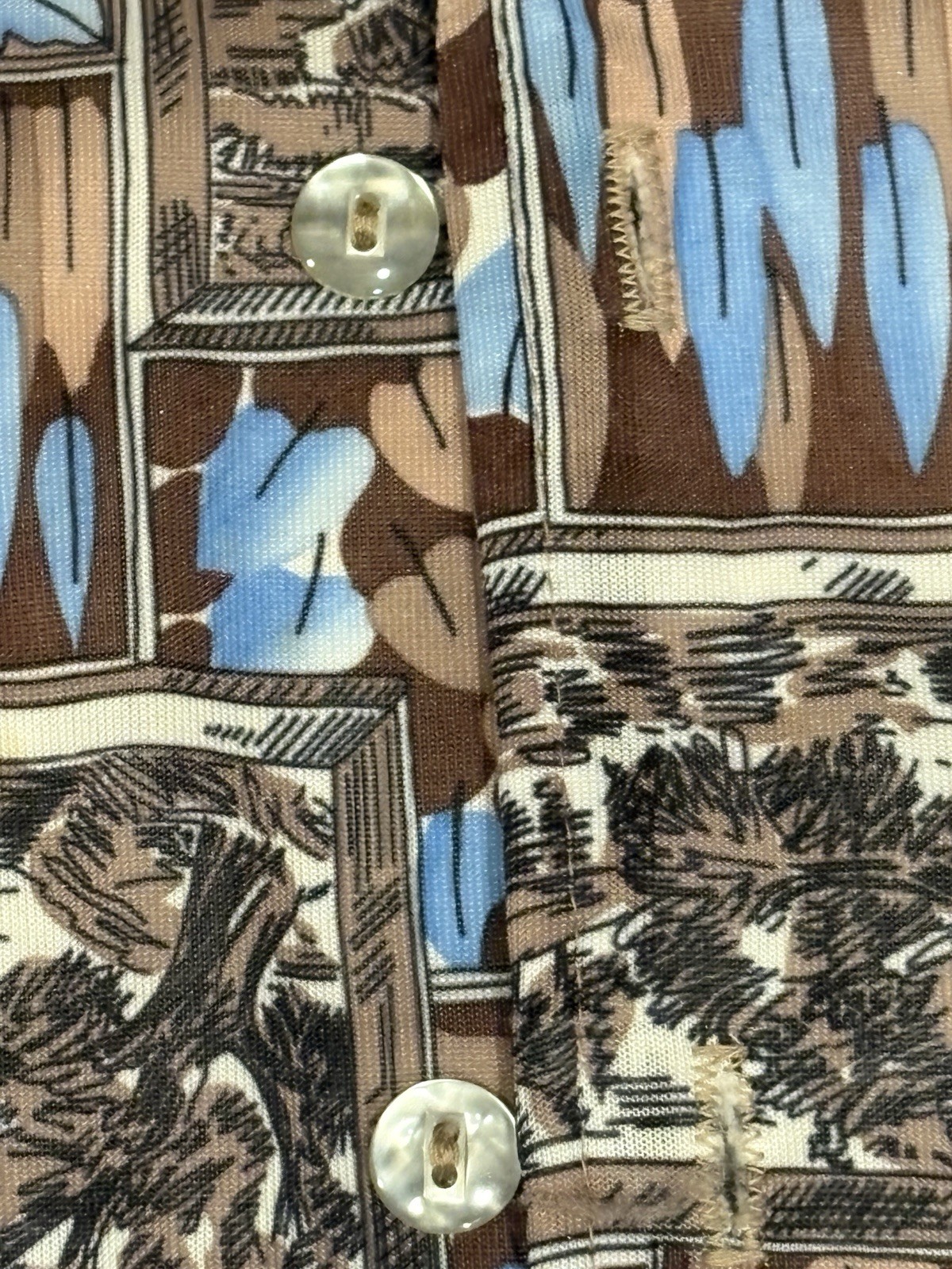 Vintage Joel California Polyester Shirt Men's Medium Button 70s Disco Fall Print