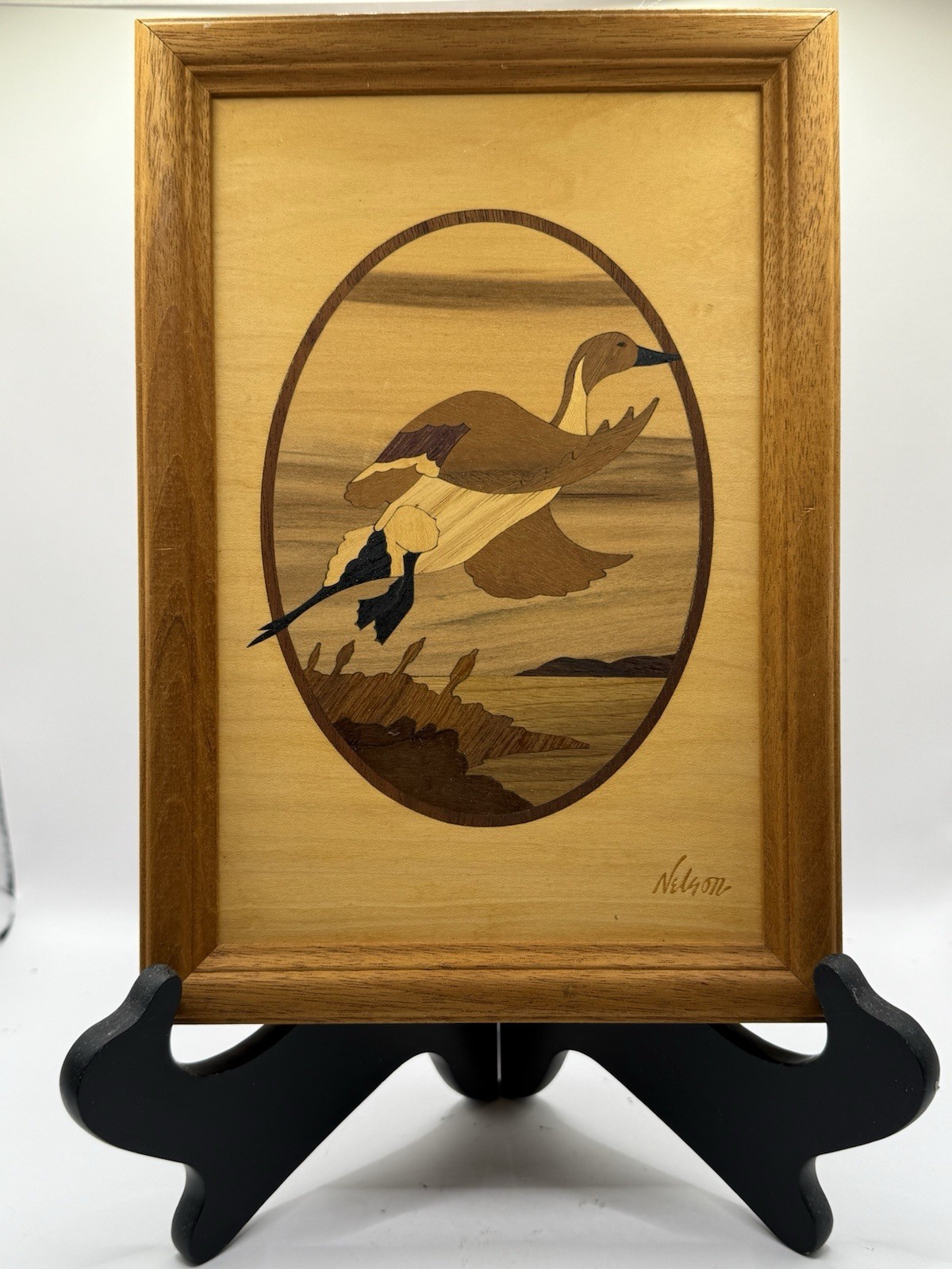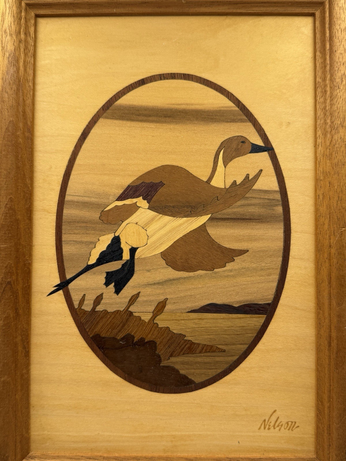 HUDSON RIVER WOOD INLAY PINTAIL DUCK BY NELSON PICTURE 10 x7 FRAMED