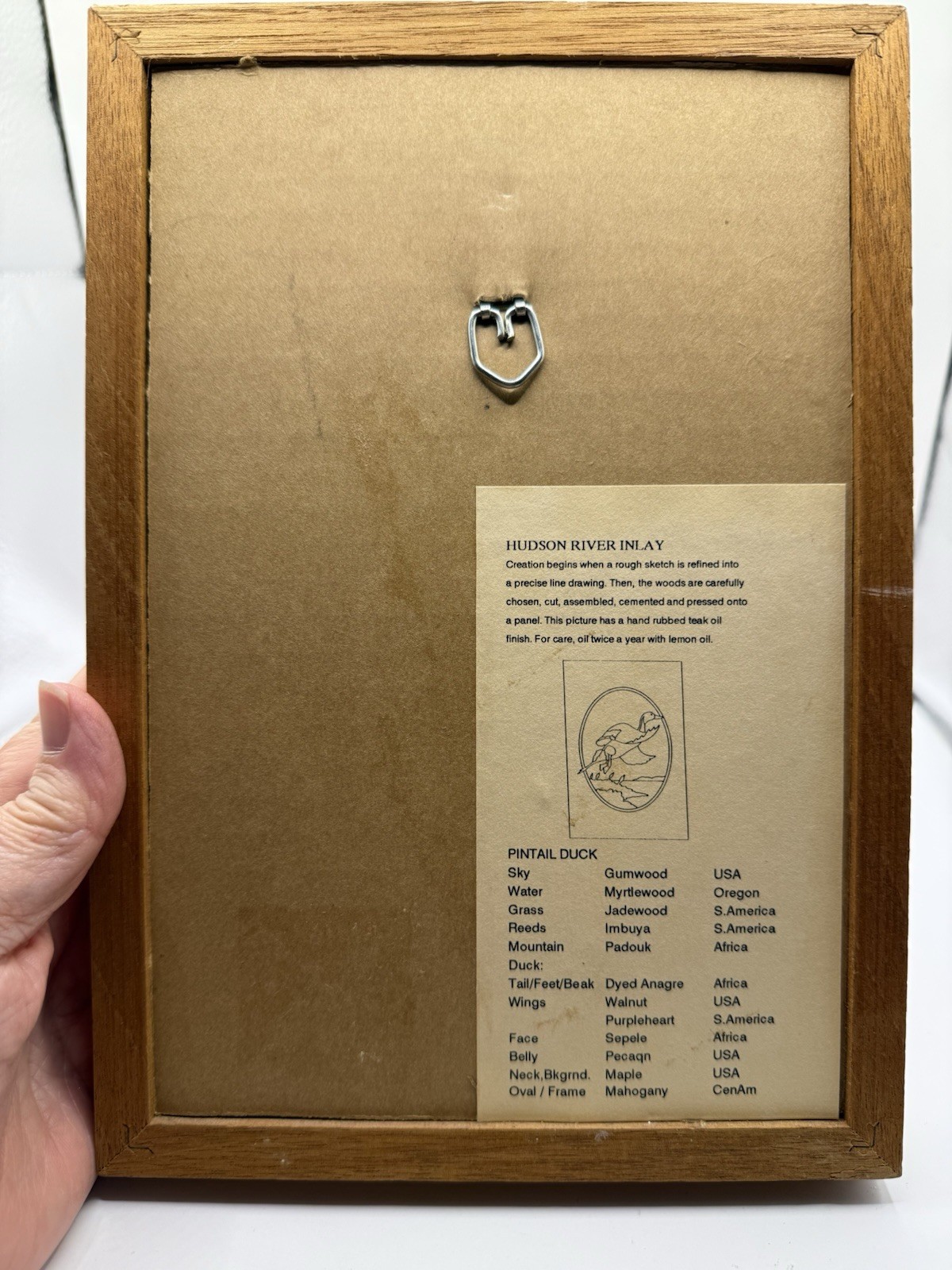 как выглядит HUDSON RIVER WOOD INLAY PINTAIL DUCK BY NELSON PICTURE 10 x7 FRAMED фото