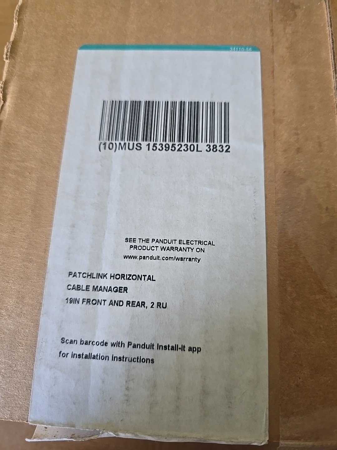 PANDUIT WMP1E PATCHLINK HORIZONTAL CABLE MANAGER 19 FRONT AND REAR 2RU NIB 1PC
