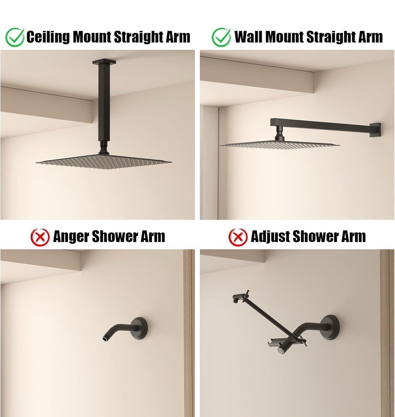 16Inch Rain ShowerHead 16Square Rainfall High Pressure Stainless Steel Bath