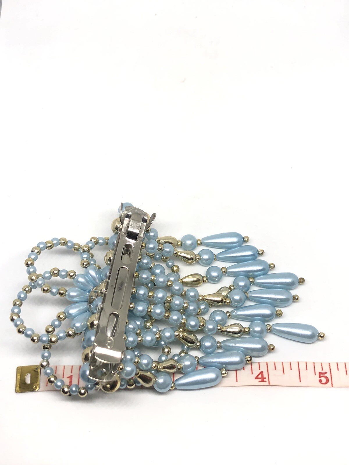 Barrette Faux Pearl Vintage Hair Clip Light Blue Golden Bead Dangle