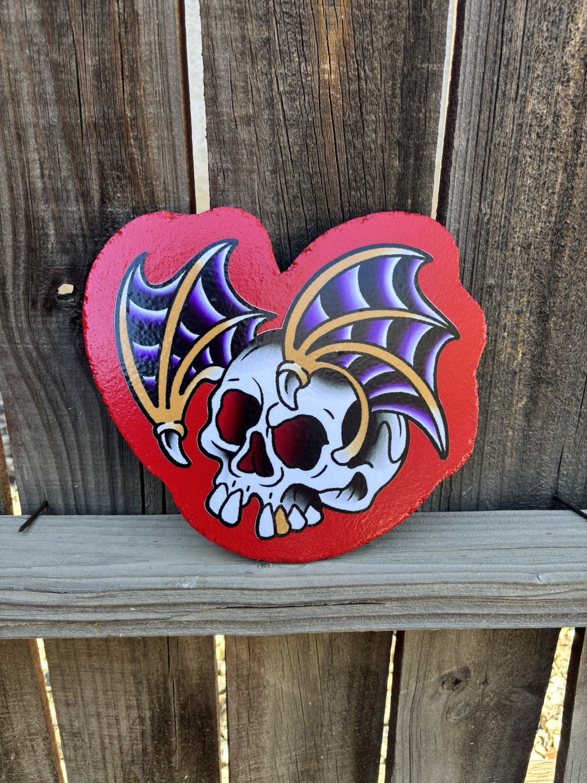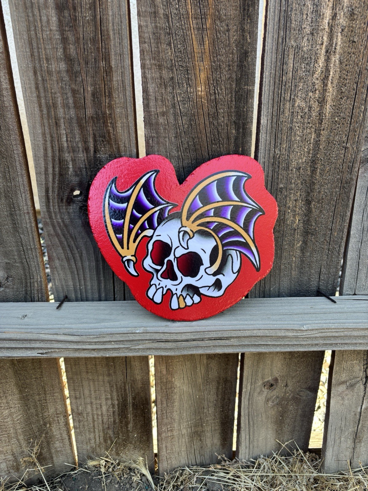 American Traditional Bat Skull Tattoo Flash Handmade Woodcutout Sign
