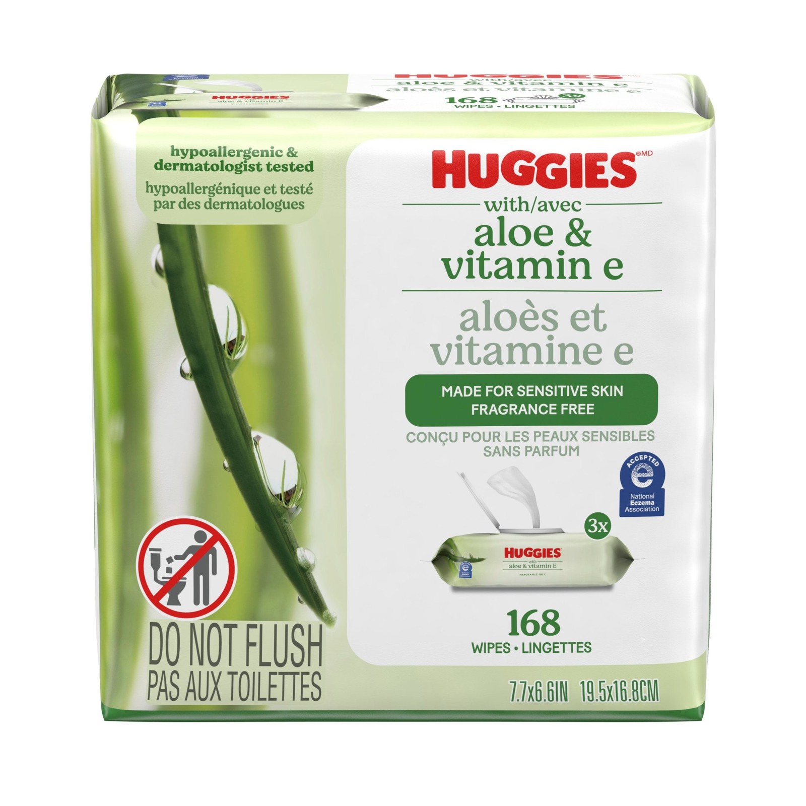 Huggies Wipes with Aloe Vitamin E, Unscented, 3 Flip-Top Packs
