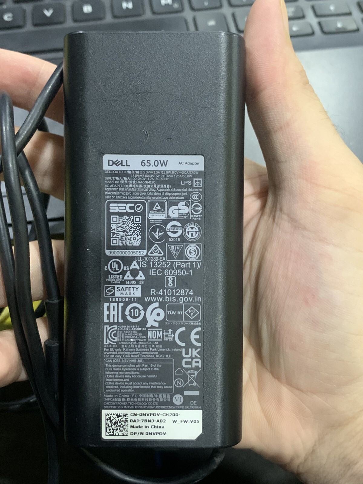 как выглядит lot of 5 - 65W Dell Laptop Charger Type C Adapter AUTHENTIC with Power Cord фото