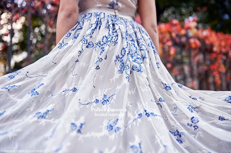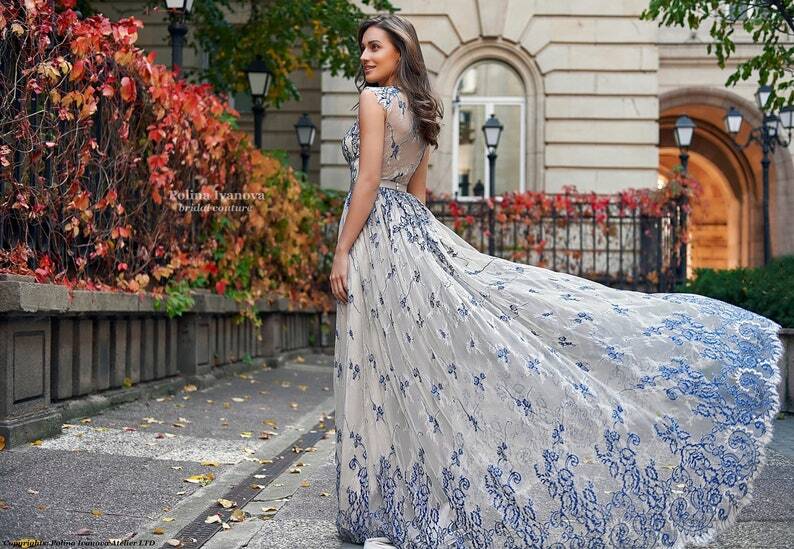 как выглядит Floral Blue Elegant Wedding Dresses Romantic 3D Flower Long Bridal Gowns фото