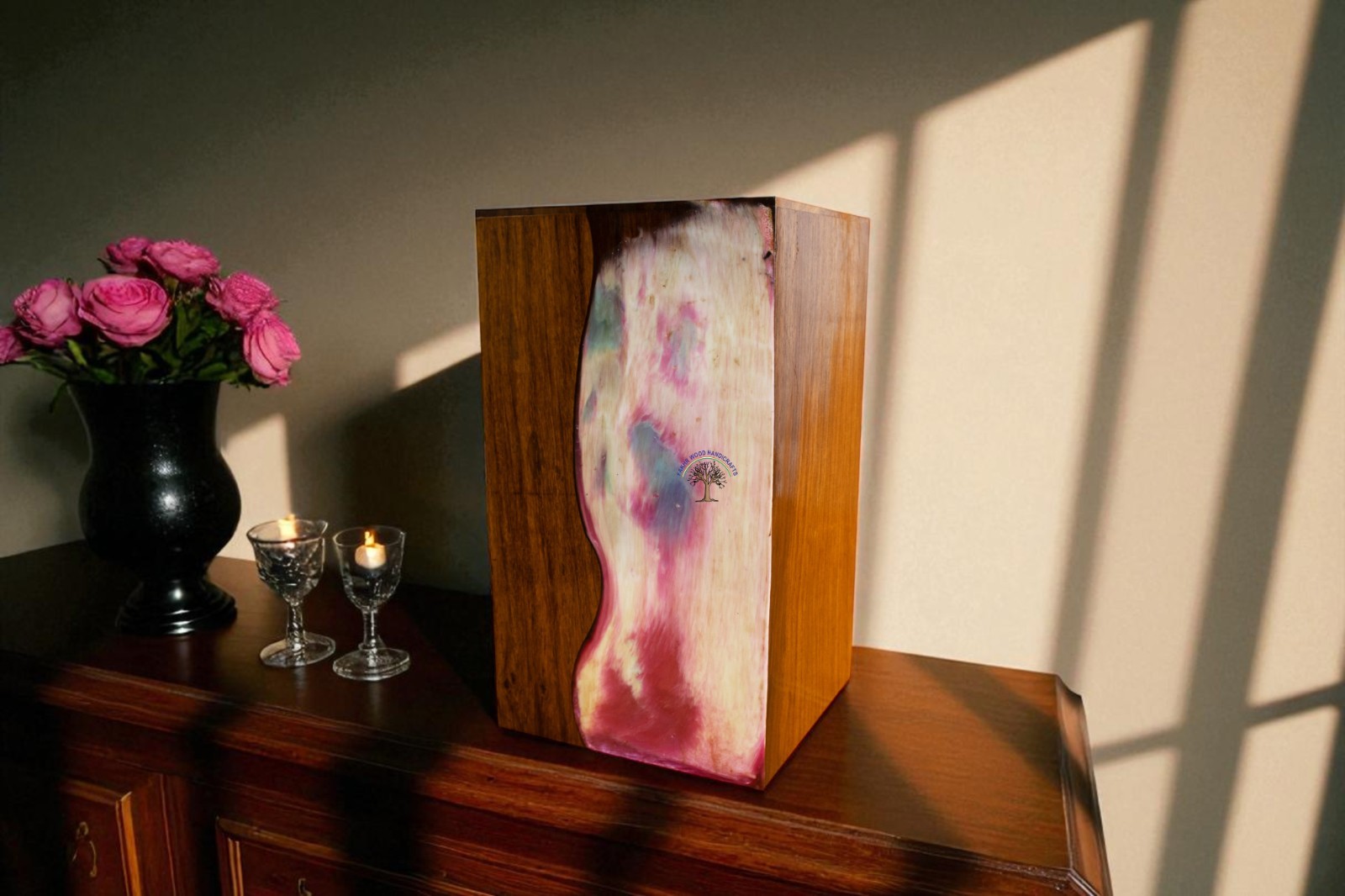 Wooden Epoxy Resin Cremation Urn Large Funeral Urn for Adult Pet Ashes Human