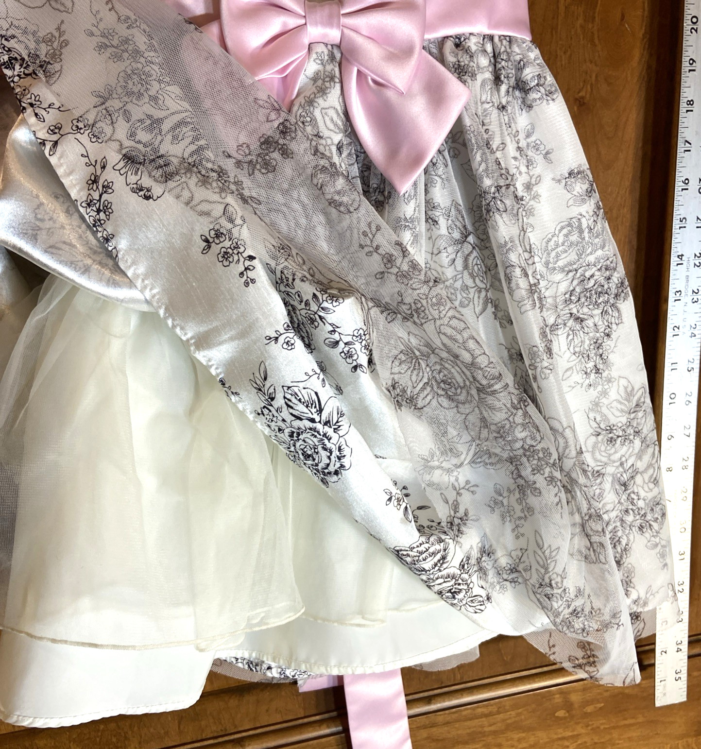 Bonnie Jean Fancy White Pink and Black Flowers Girls Size 7 Dress