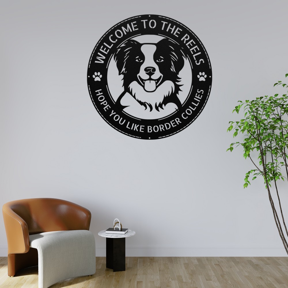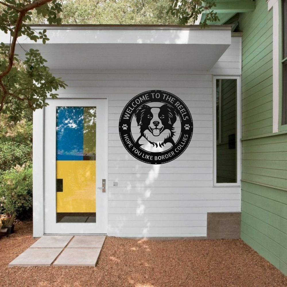 Personalized Border Collie Metal Sign Custom Family Name Welcome Home Decor Gift