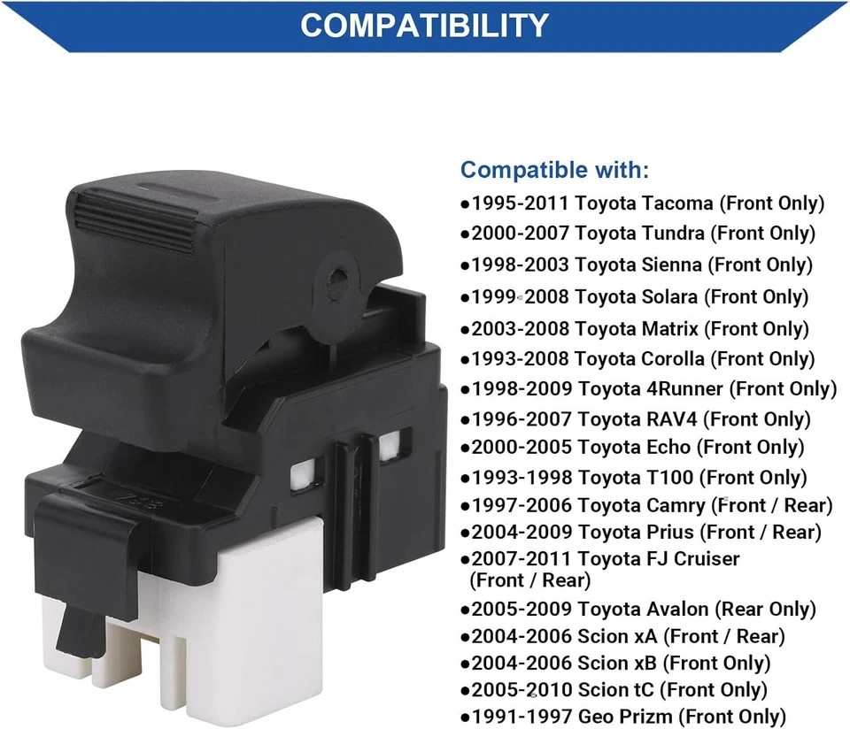 • Power Window Switch Button Front Rear Passenger Side Compatible with Toyota