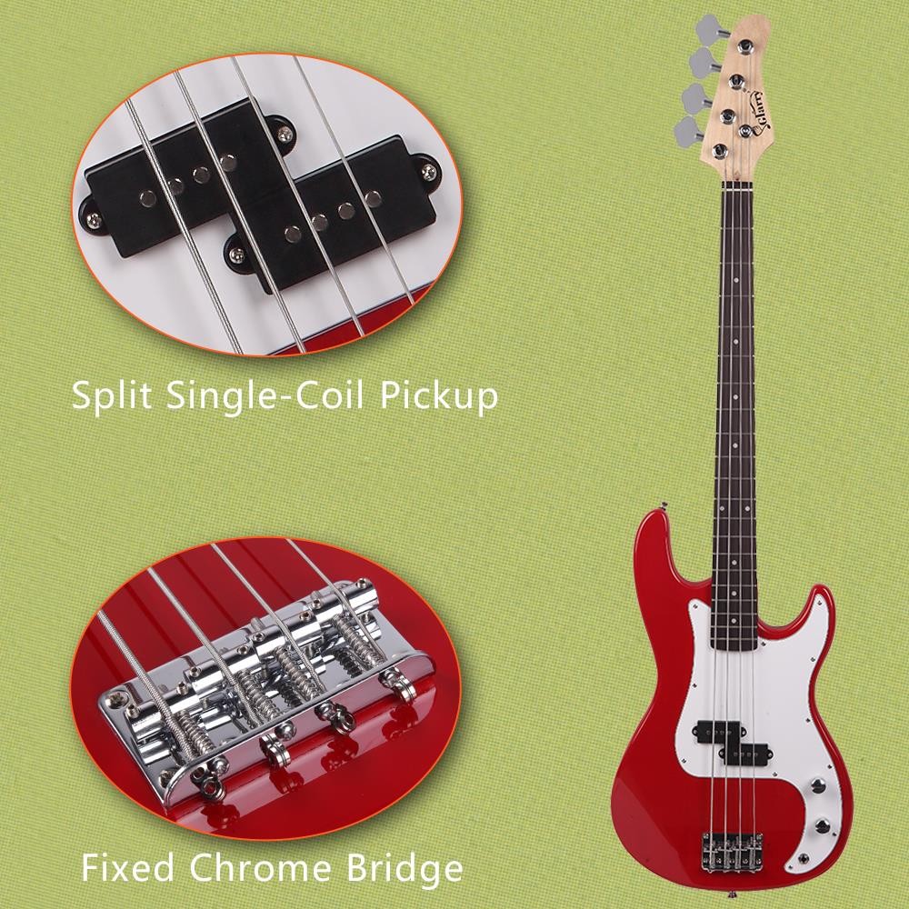 Glarry 46in Beginner Electric Bass Guitar Starter Kit w/Case 20W Amp Red