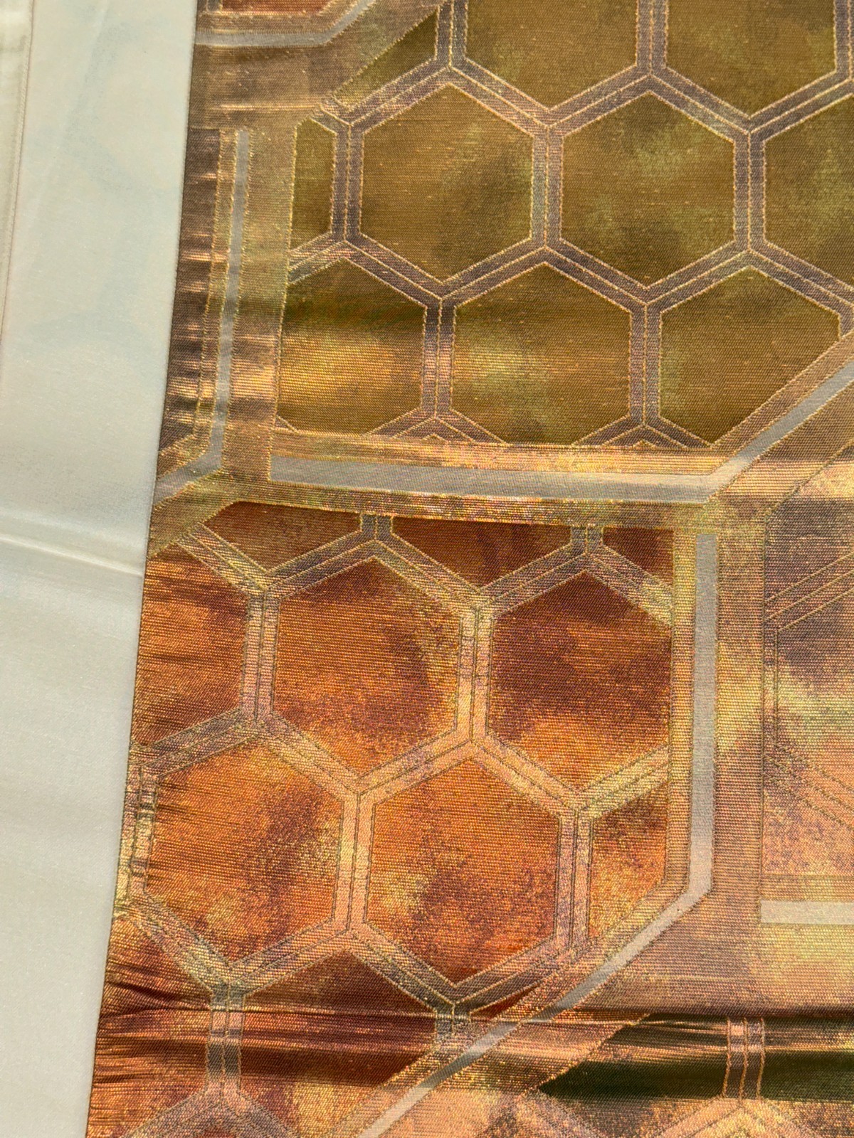 Japanese Vintage Kimono Fukuro Obi Silk Gold Traditional Authentic 165x12in