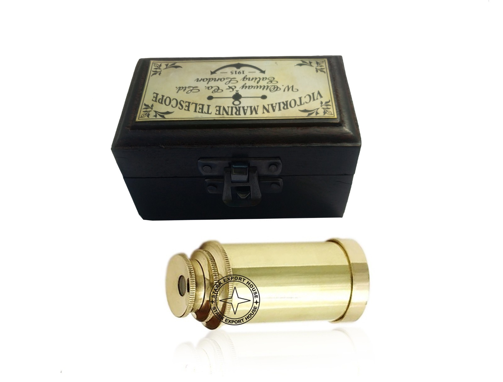 Brass Telescope Marine Handheld Spyglass Telescope Binoculars 6 Inch Wood Box GF