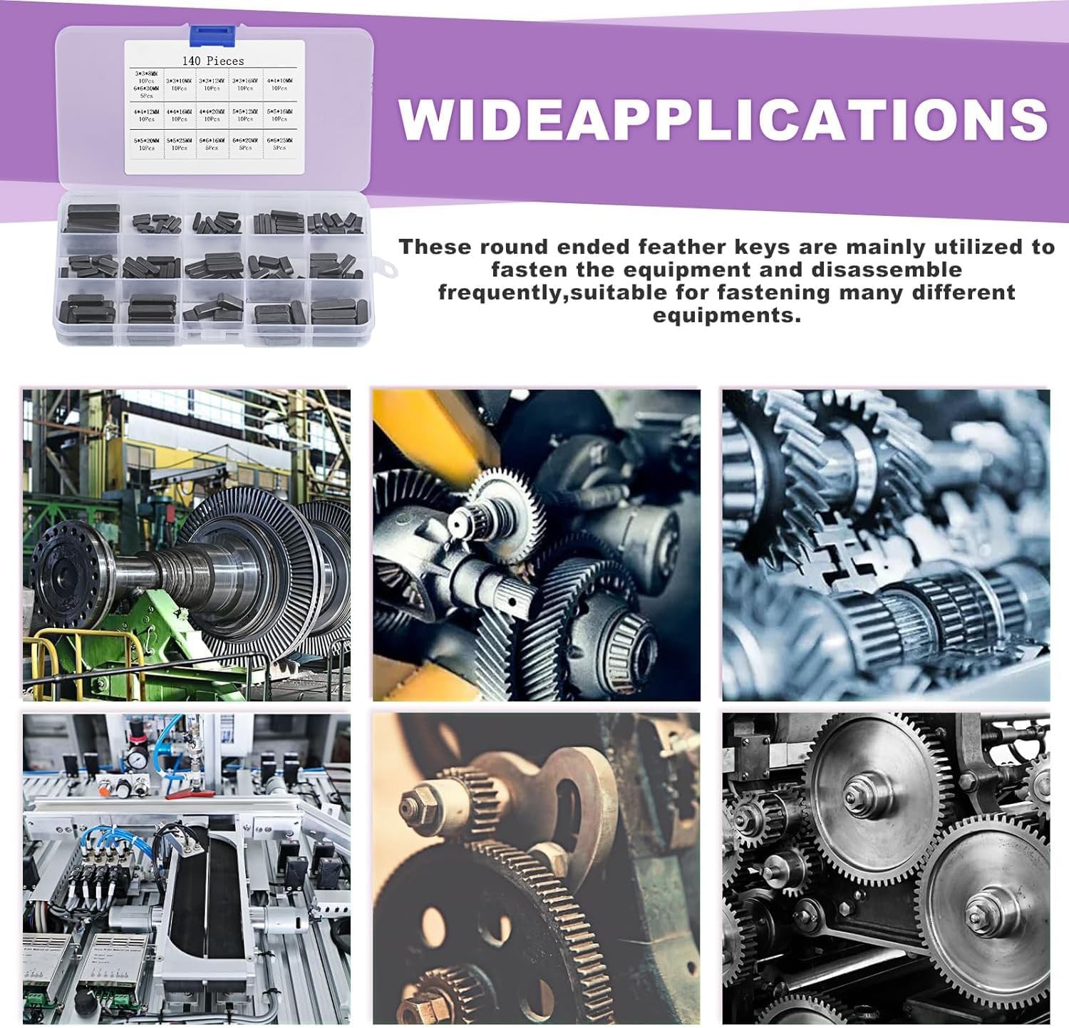 140 Pcs Round Ended Feather Key, Parallel Drive Shaft Keys Set, Key Silver