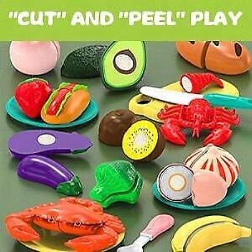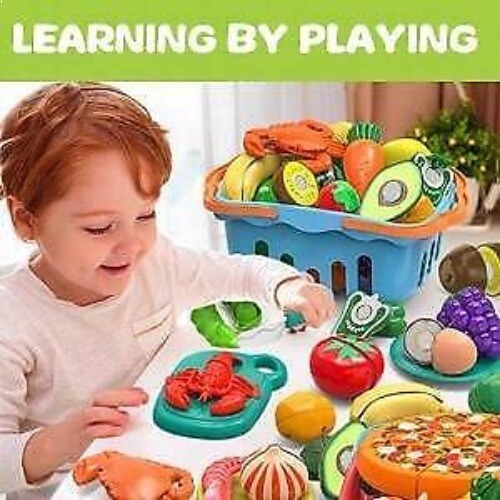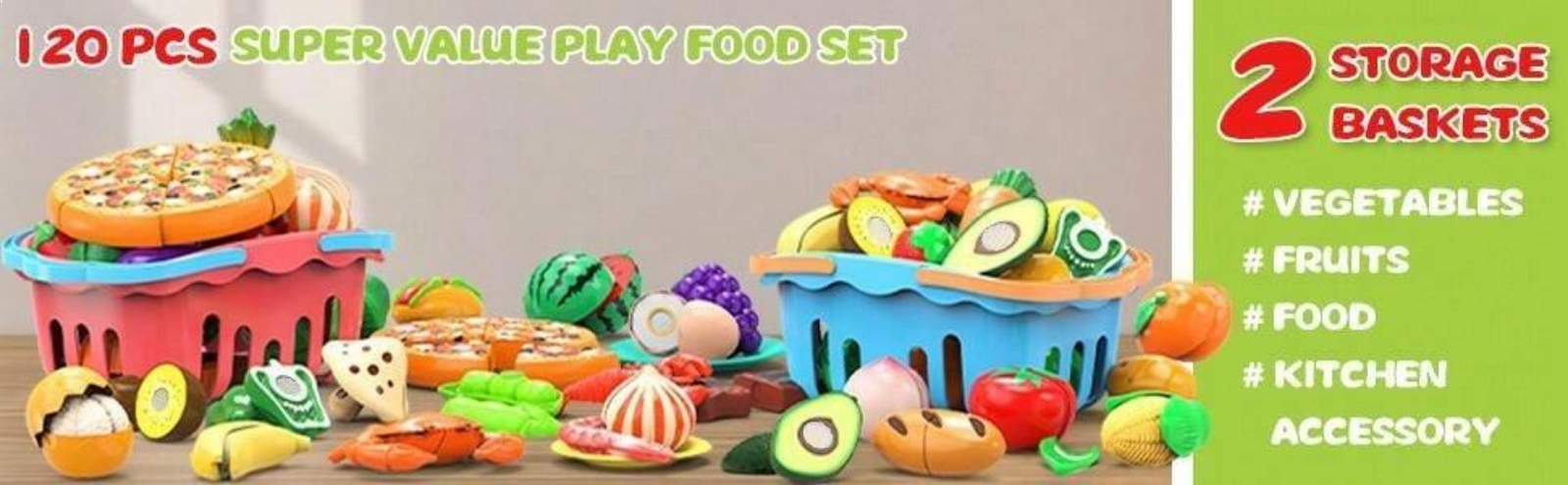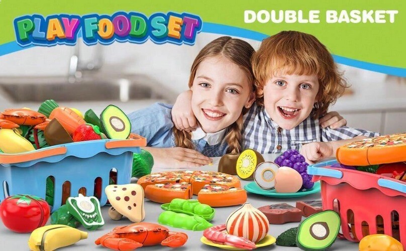 как выглядит 120 Pcs Cutting Play Food Toy With 2 Colors Storage Baskets, Kitchen Pretend Set фото