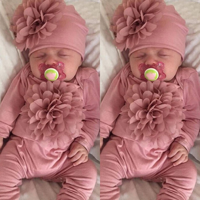 Newborn Baby Girl Long Sleeve Floral Romper Bodysuit Jumpsuit Hat Clothes Outfit