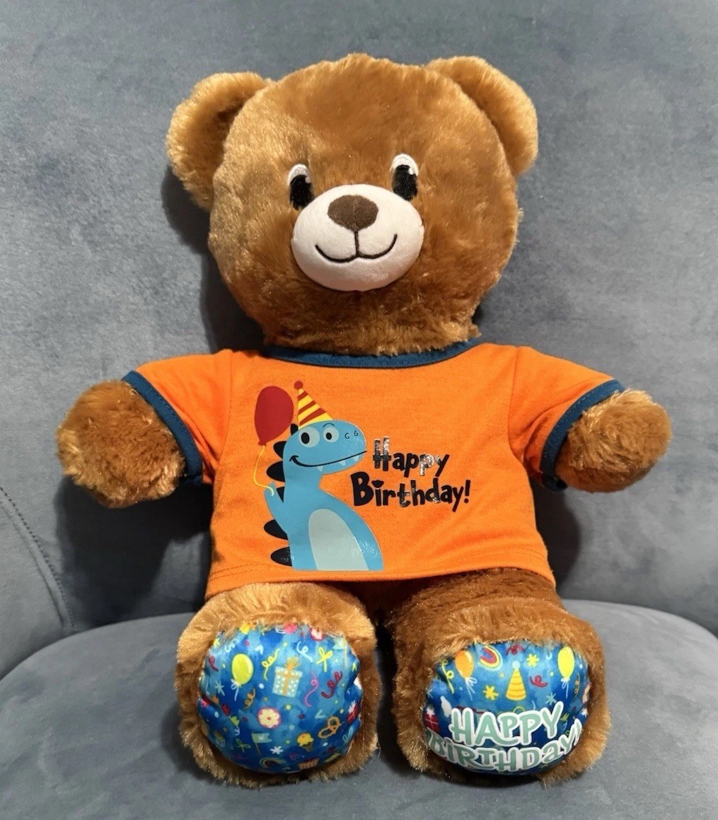• Build A Bear Happy Birthday Bear Plush Stuffed Animal With Dinosaur Shirt