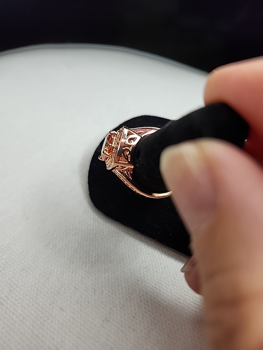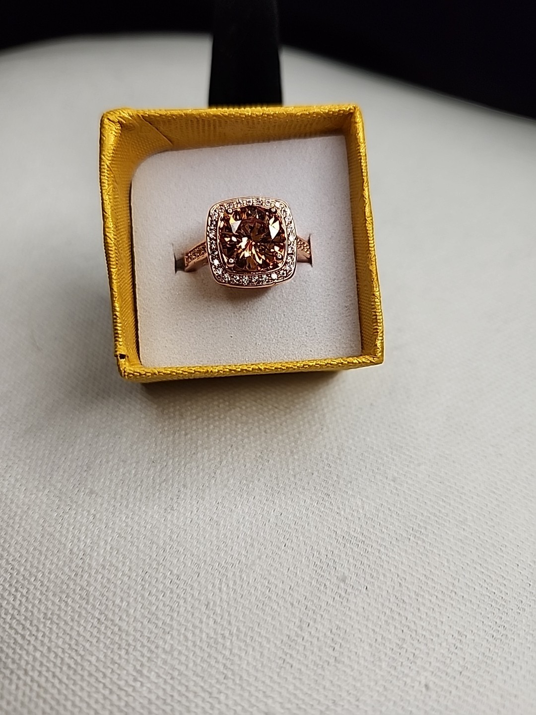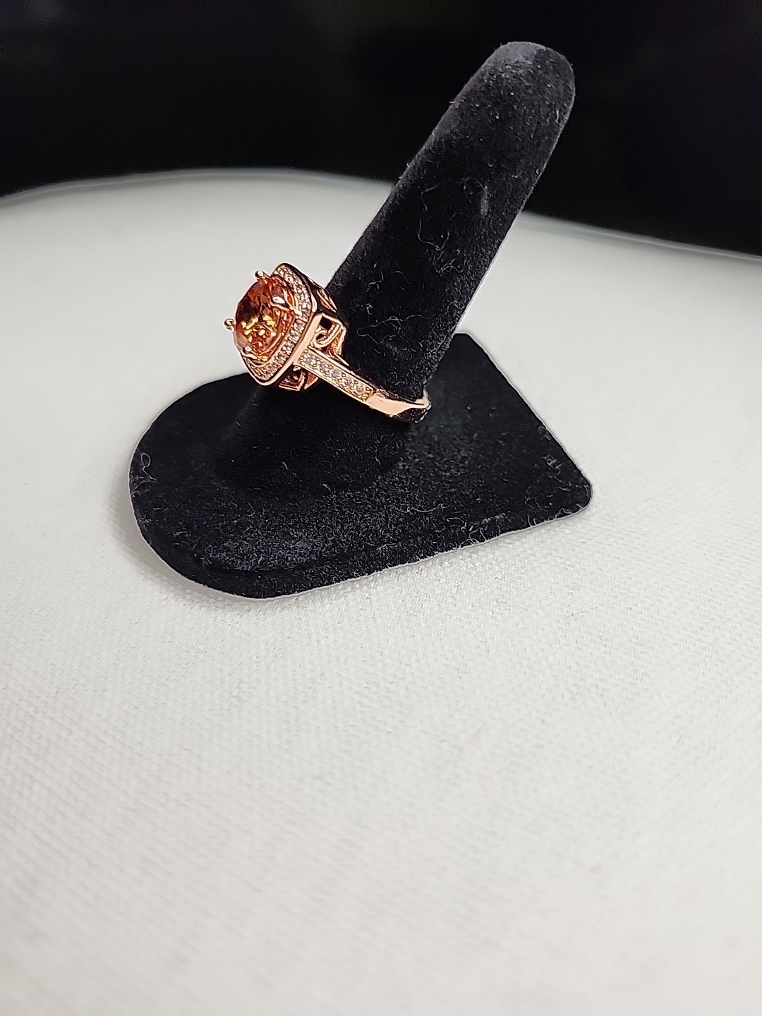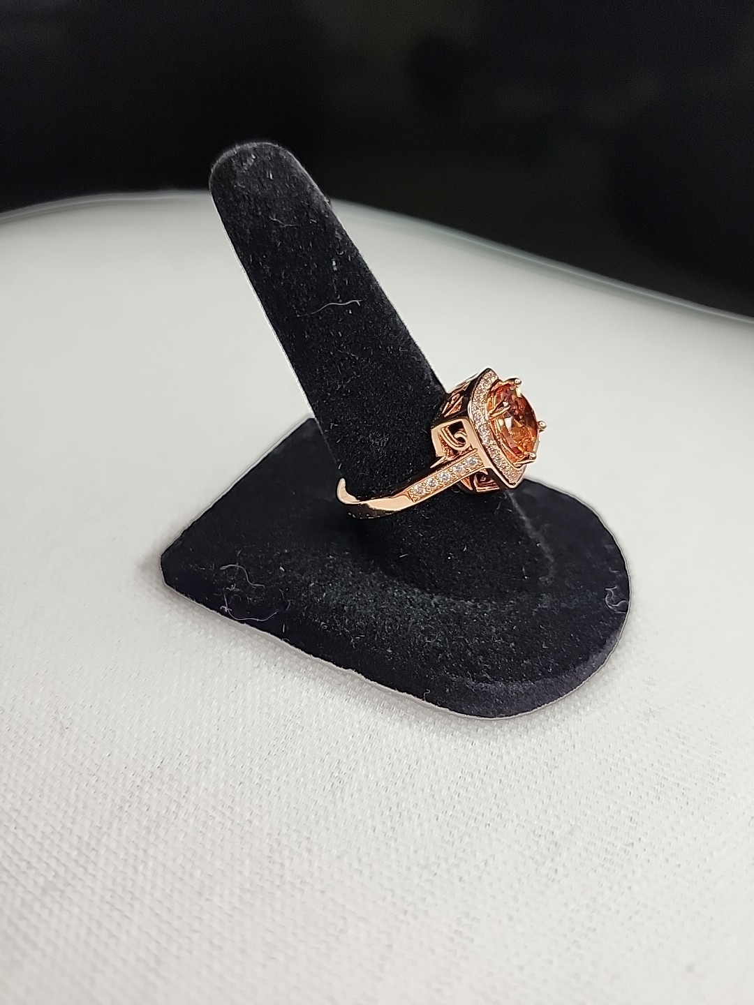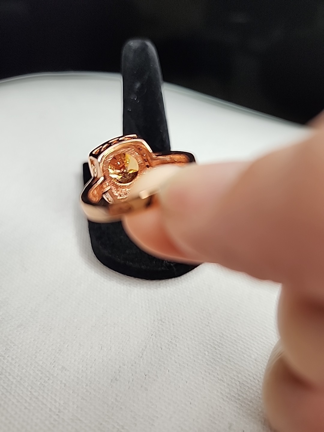 как выглядит Beautiful Rose Gold Over Sterling Silver Citrine Cubic Zirconia Ring Sz 7 фото