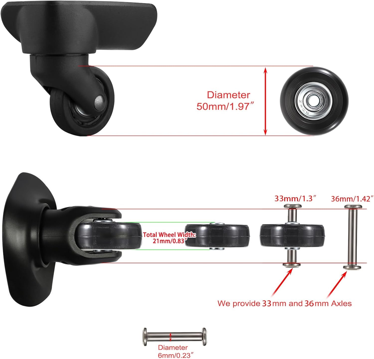 OwnMy 50mm x 18mm Set of 4 Luggage Suitcase x / 4pcs, Black