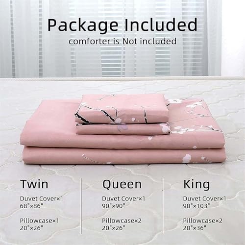 Floral Duvet Cover Set Double Flower Plum Blossom Printed Comforter Queen Pink