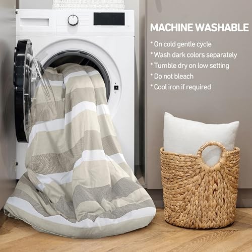 Striped Comforter Set, 3 Pieces Comforter and Shams Set, Soft King Neutral