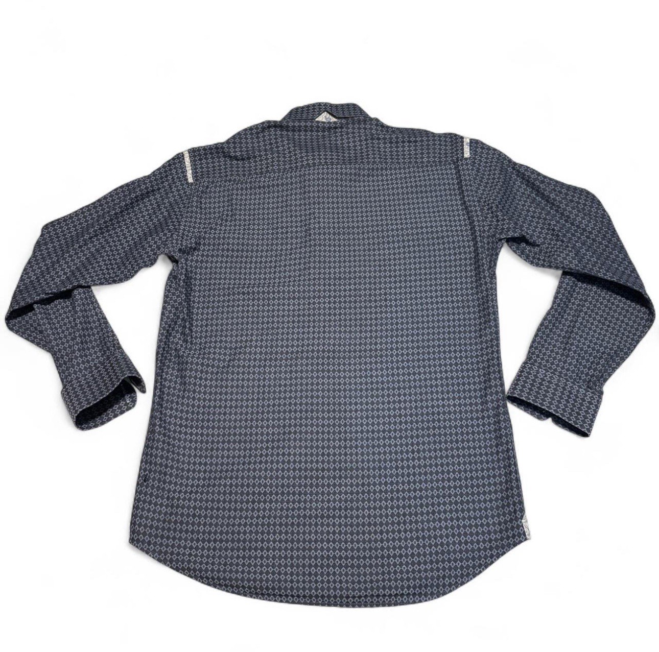 Bogosse Mens 3 Button Up Shirt Blue Diamond Print Paisley Trim Flip Cuff Crystal