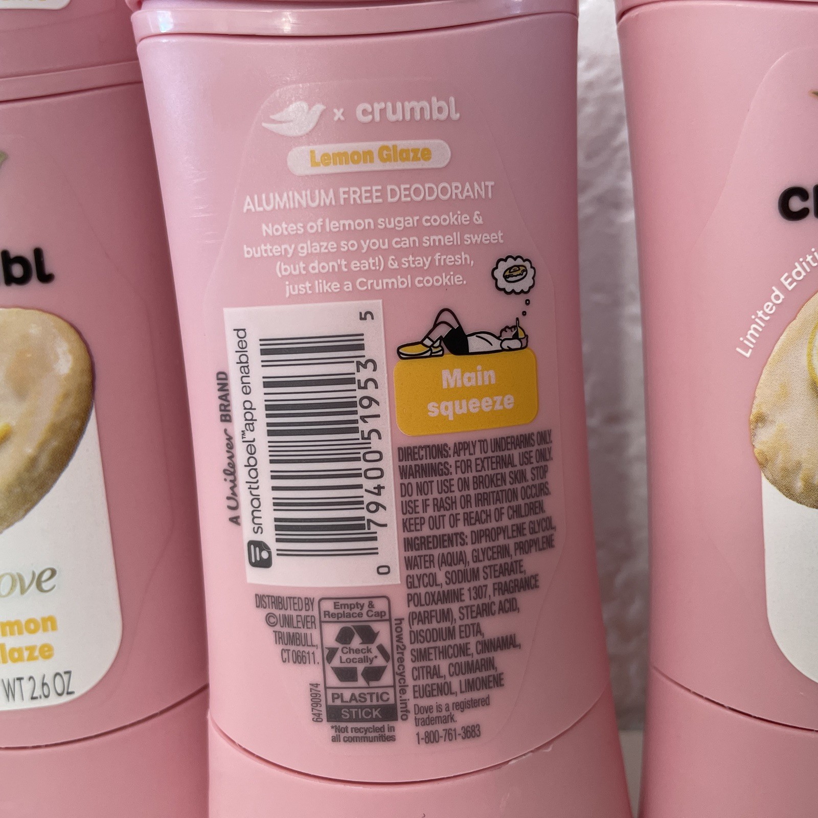 3 Dove Crumbl Deodorant Stick Crumbl Lemon Glaze Aluminum Free 2.6 OZ