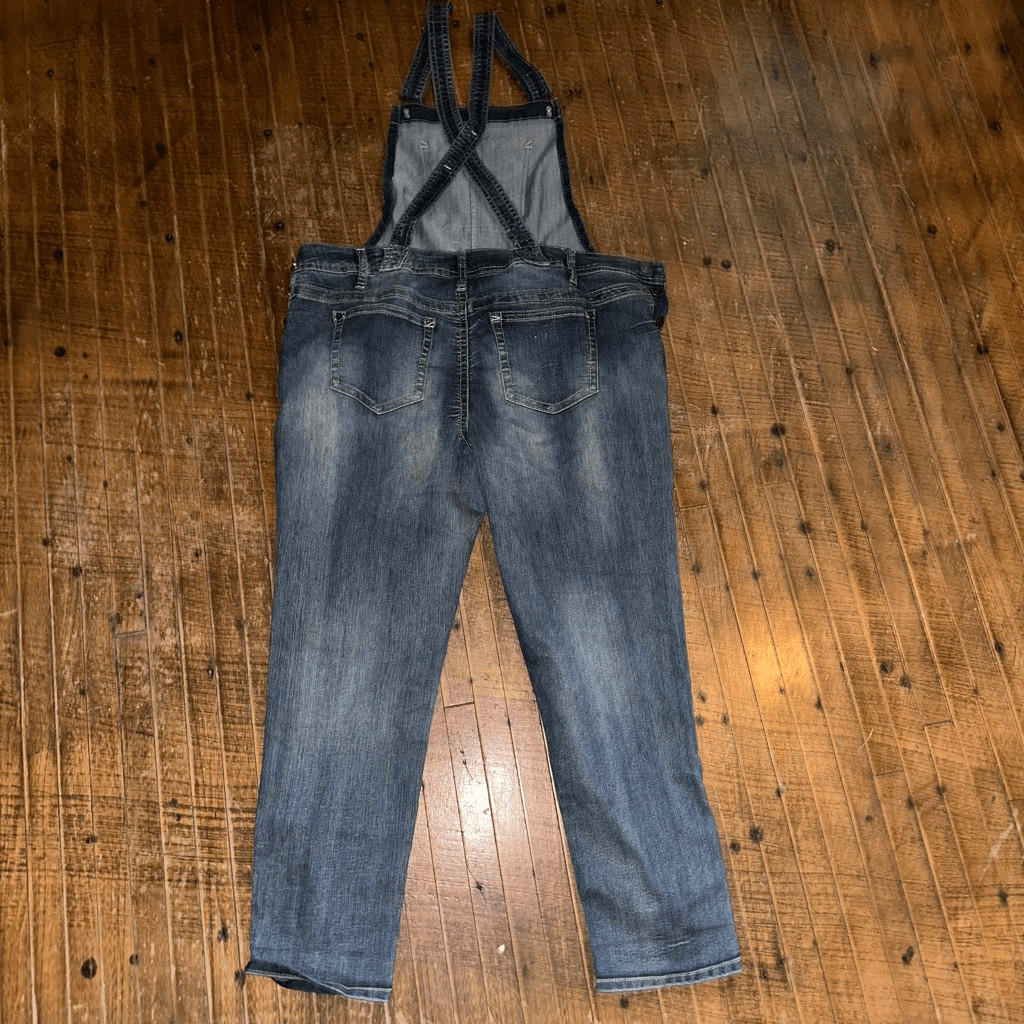 как выглядит Wallflower farmer distressed XL painter denim overalls фото