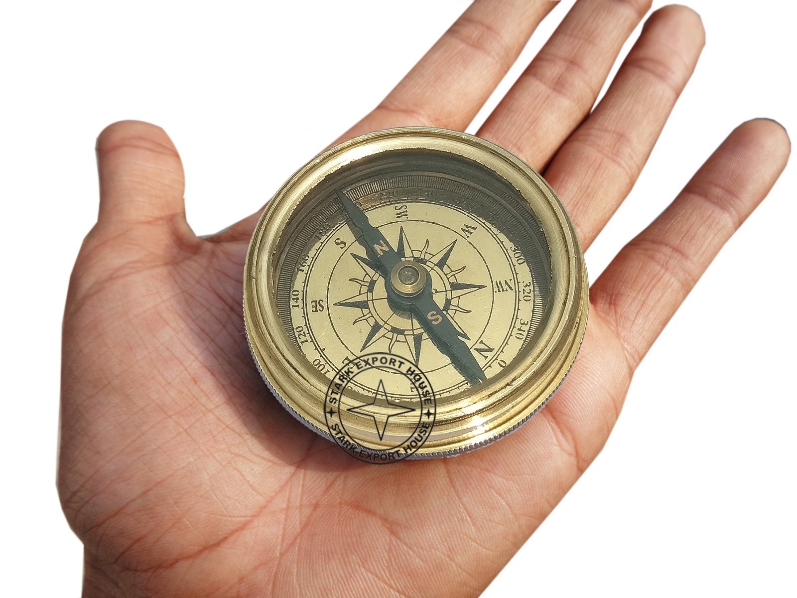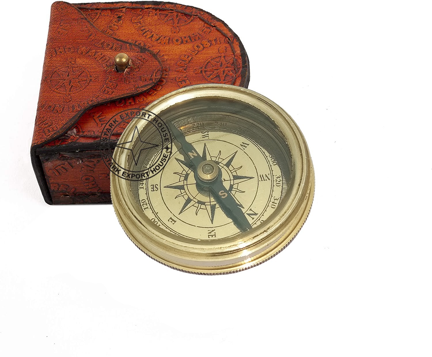 Brass Pocket Sundial Compass Camping Hiking 2 inch with Leather Box ASQW