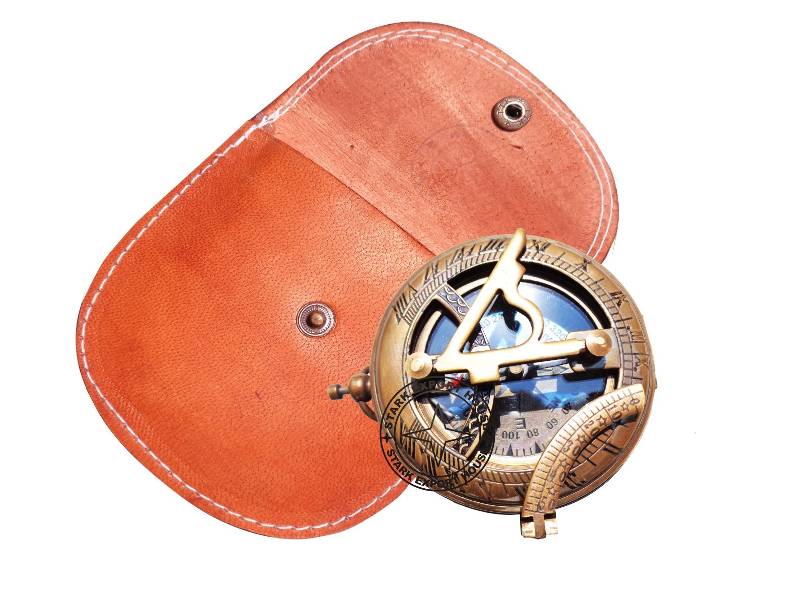 как выглядит Antique Brass Pocket Sundial Compass Camping Hiking 3 inch with Leather Box XCDS фото