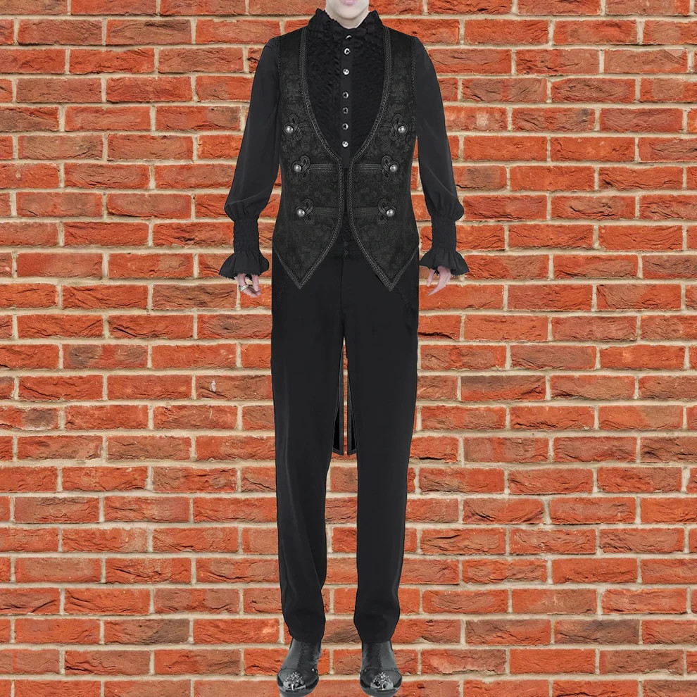 Men's Brocade Vest Waistcoat Tailcoat Black Damask Velvet Gothic Steampunk Usa