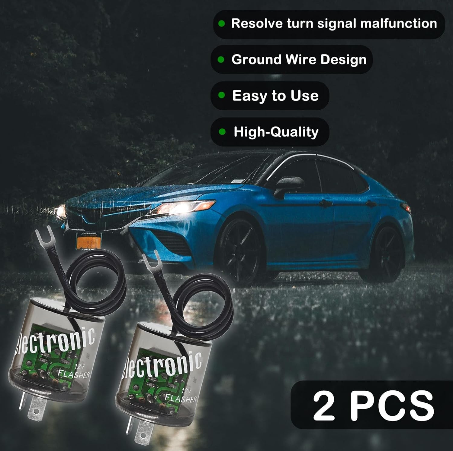 LED Flasher Relay 2 Pins 12V Pack of 2 - Heavy Duty Turn Signal Flasher