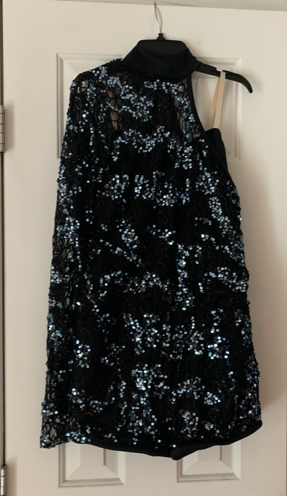 Adult Large Blue Black Sequined One Arm Jazz Tap Dance Costume Adjustable