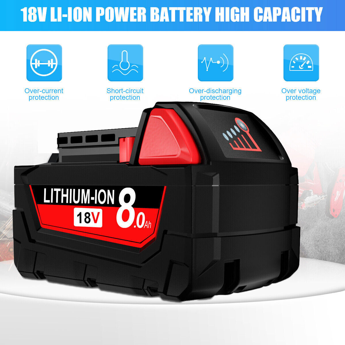 как выглядит 2x 8.0AH 18V Battery For Milwaukee M18 Lithium-ion Extended Capacity 48-11-1860 фото