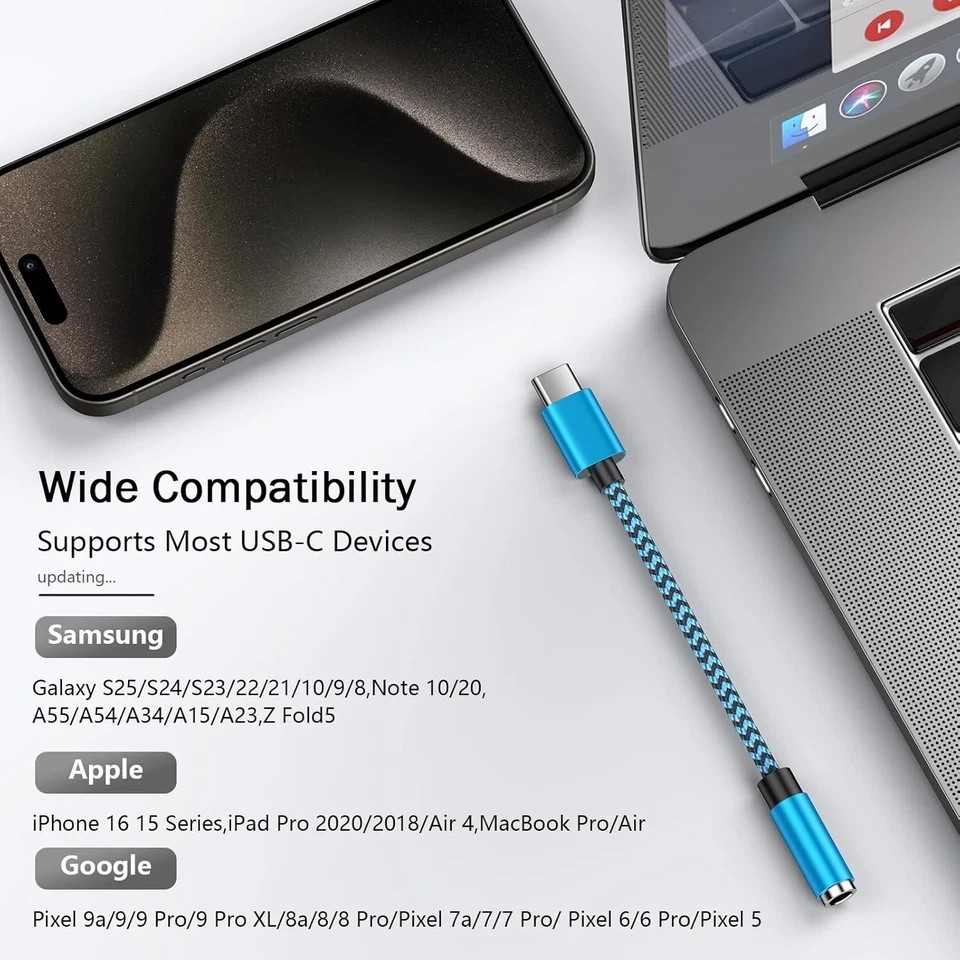 USB-C to 3.5Mm Audio Adapter for Samsung Galaxy A56/A16/A36/A26,S25 Ultra/S24/S2