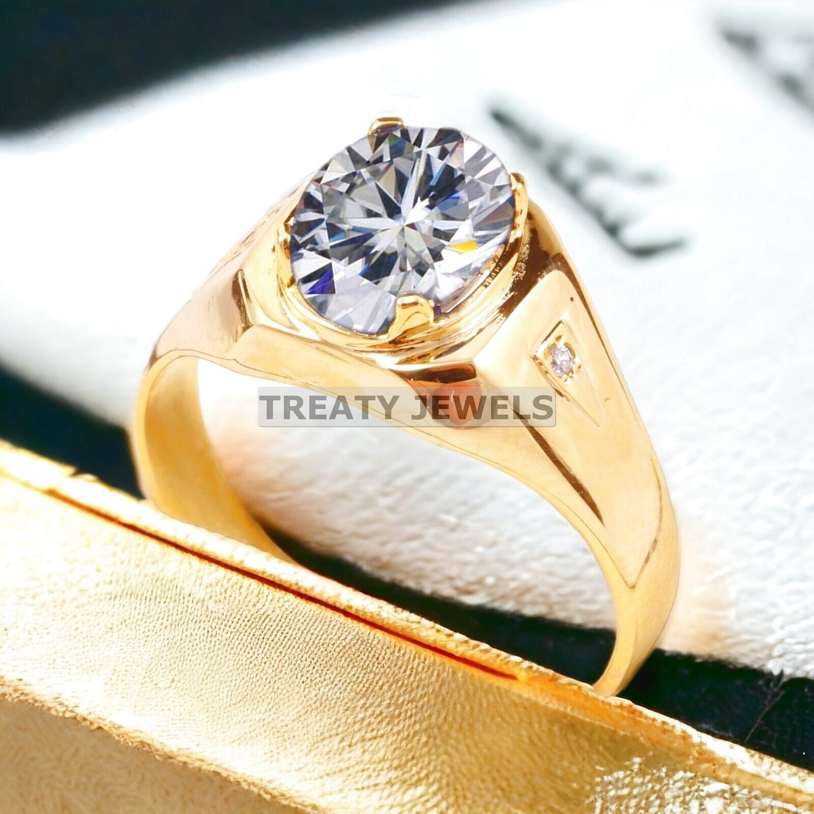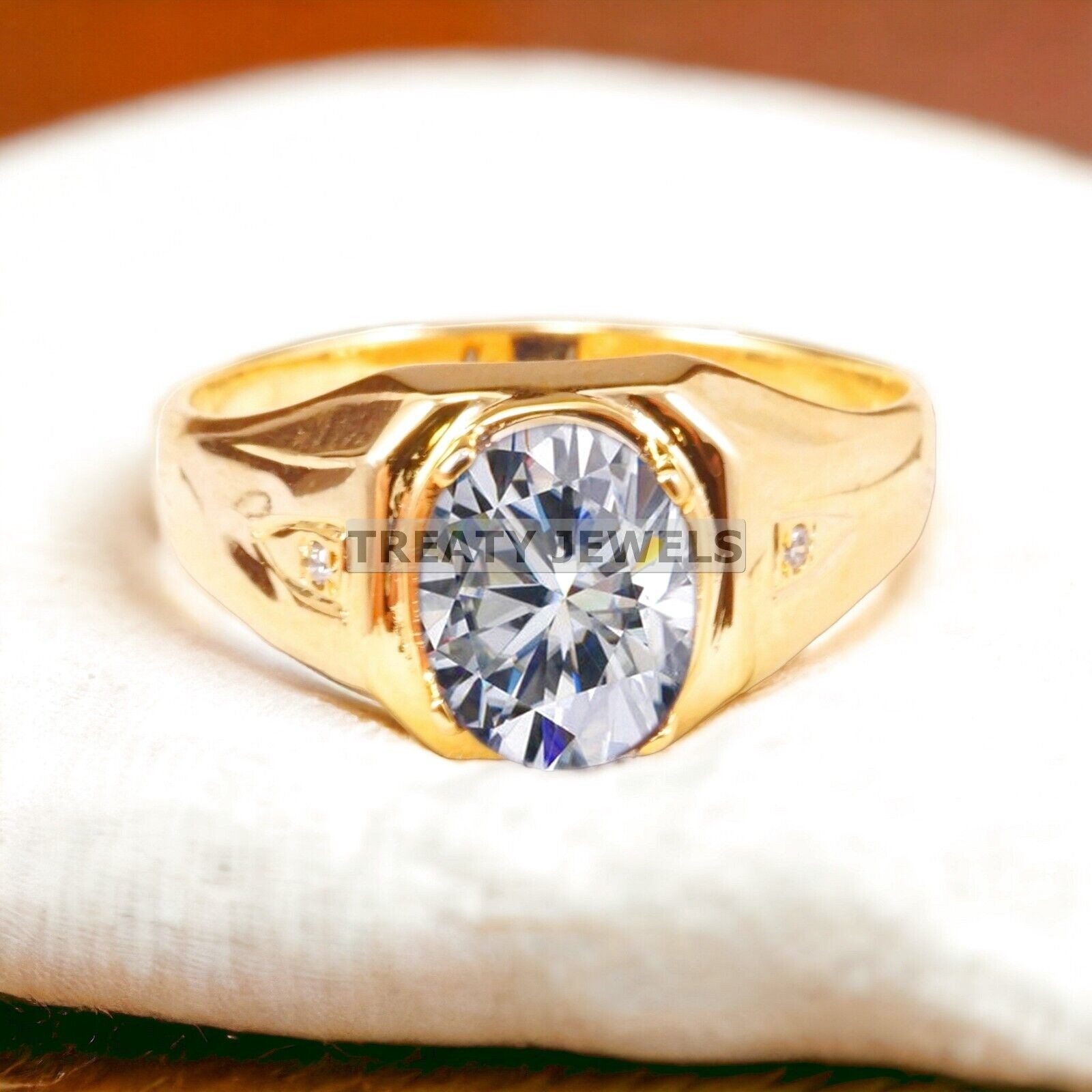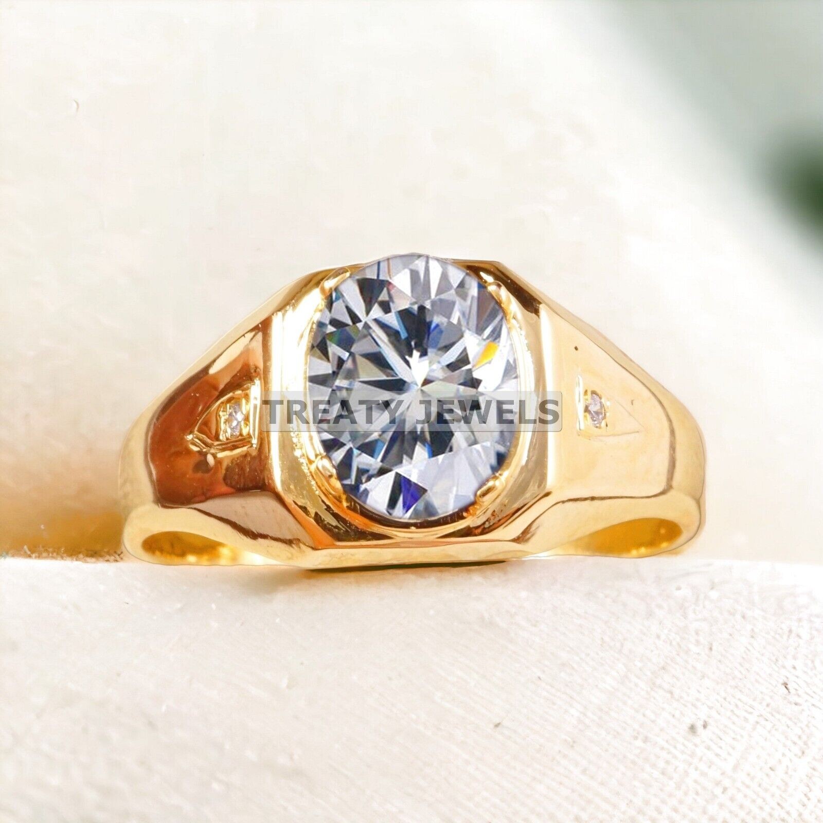 Moissanite Oval Cut With 14k Yellow Gold Ring For Men's A401