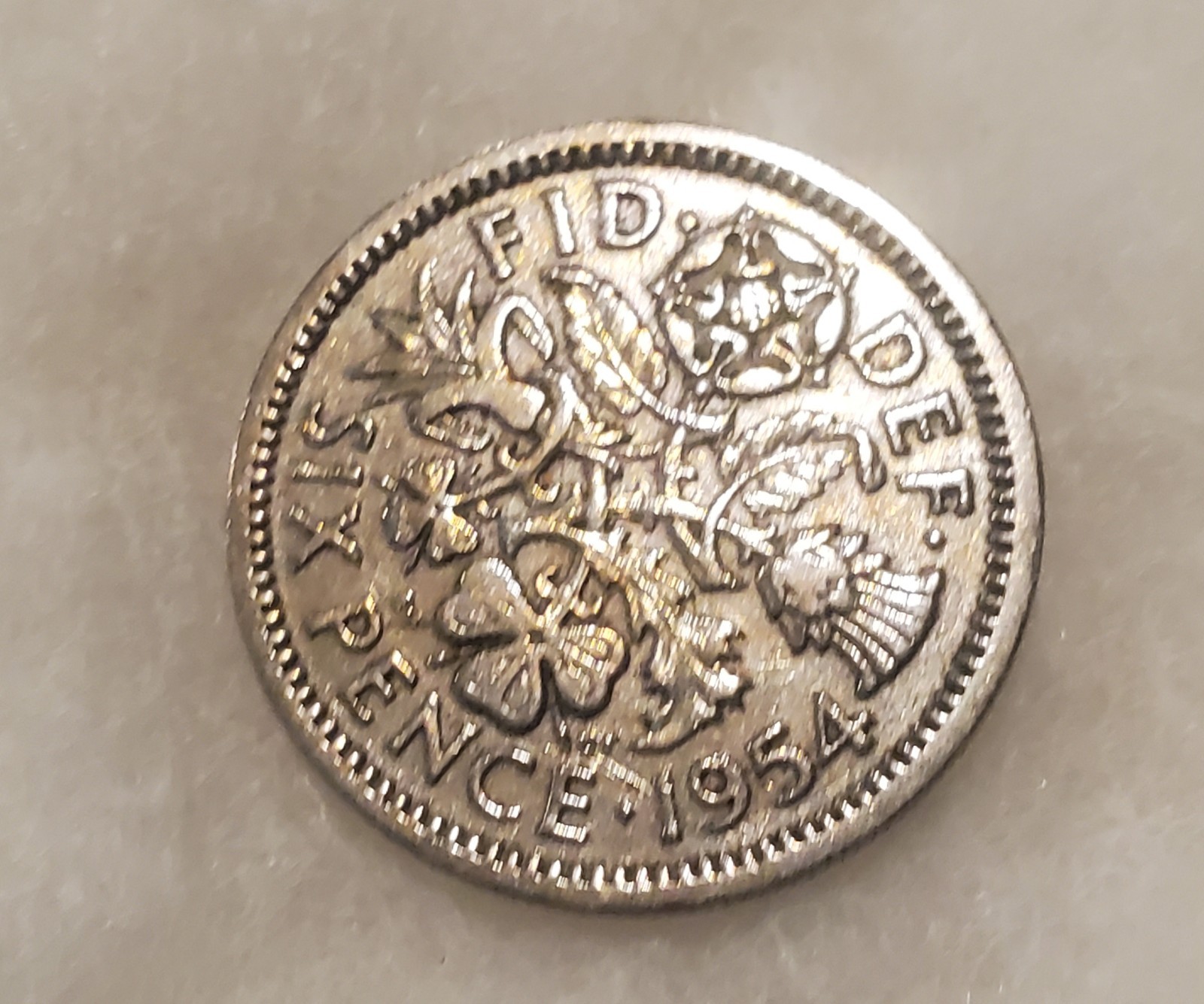 1954 British WEDDING SIXPENCE Gift Keepsake Coin, Presentation Card Pouch VTG