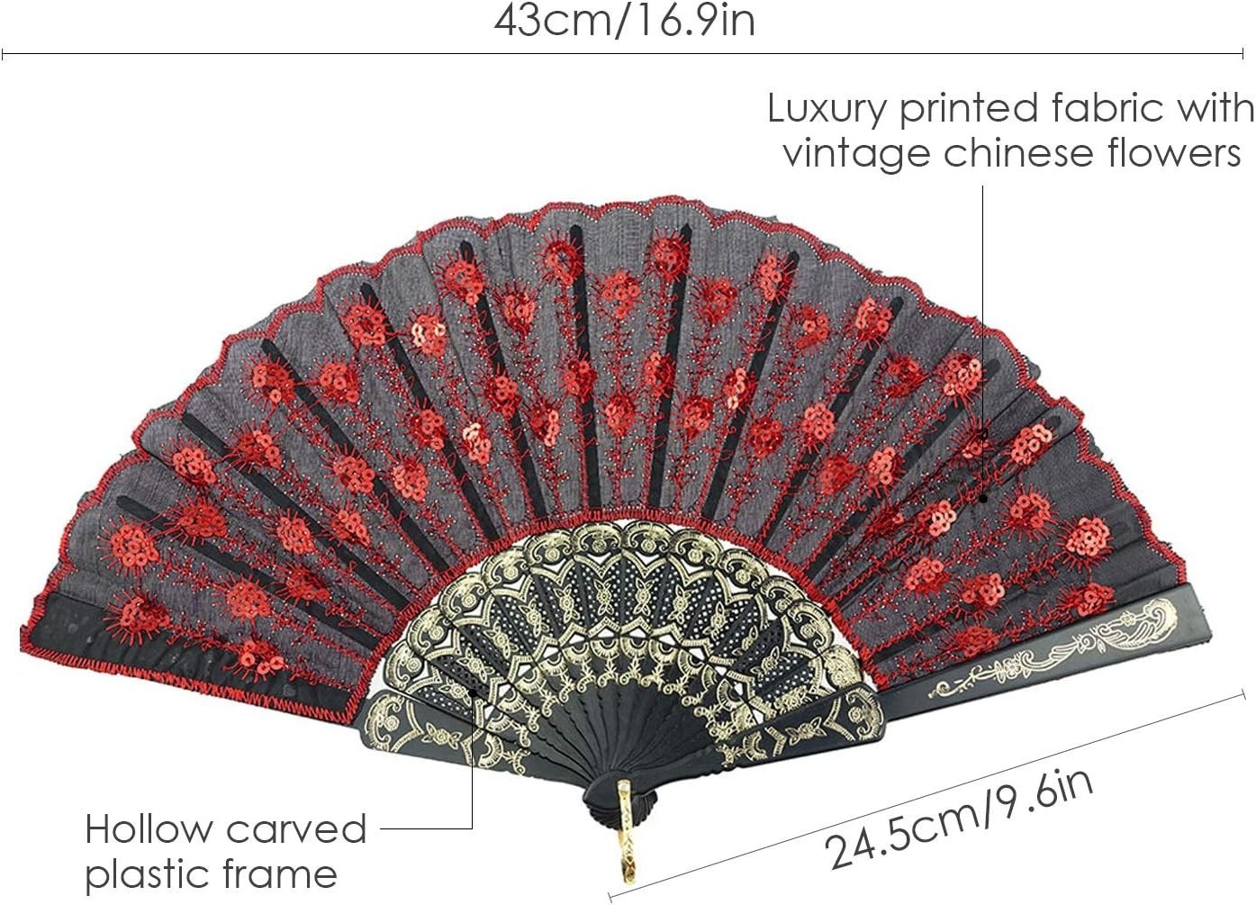 • Elegant Handmade Peacock Pattern Folding Hand Fan with Embroidered Flowers