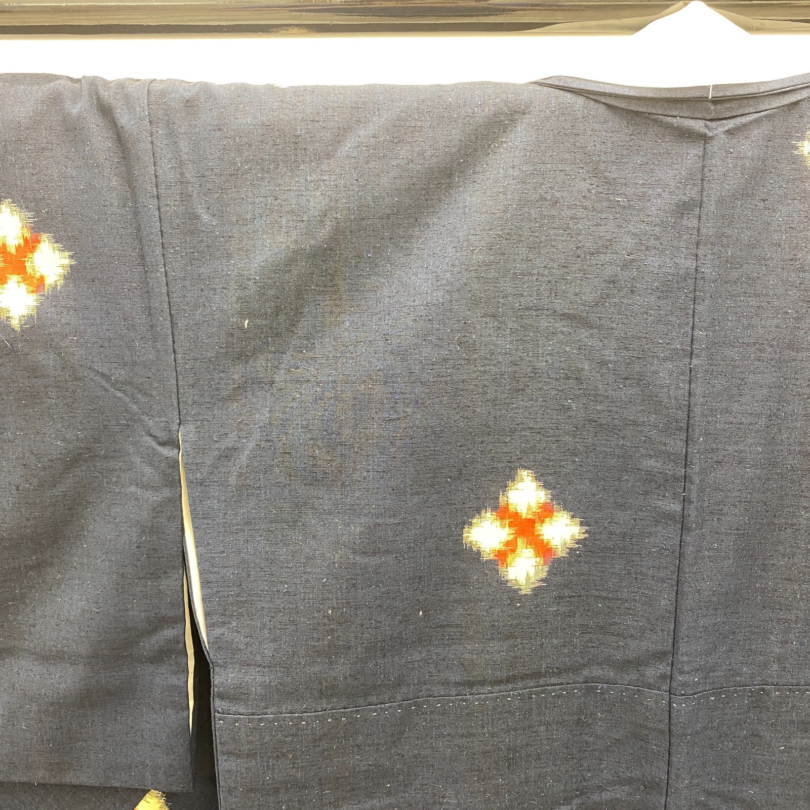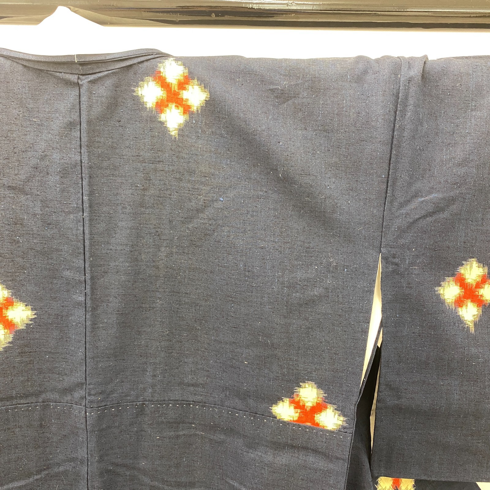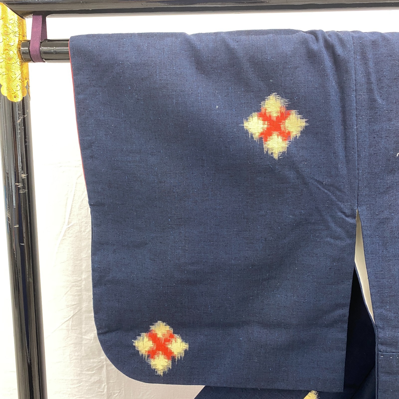 Japanese Vintage Kimono Silk Navy Tsumugi Traditional Authentic Length 63in