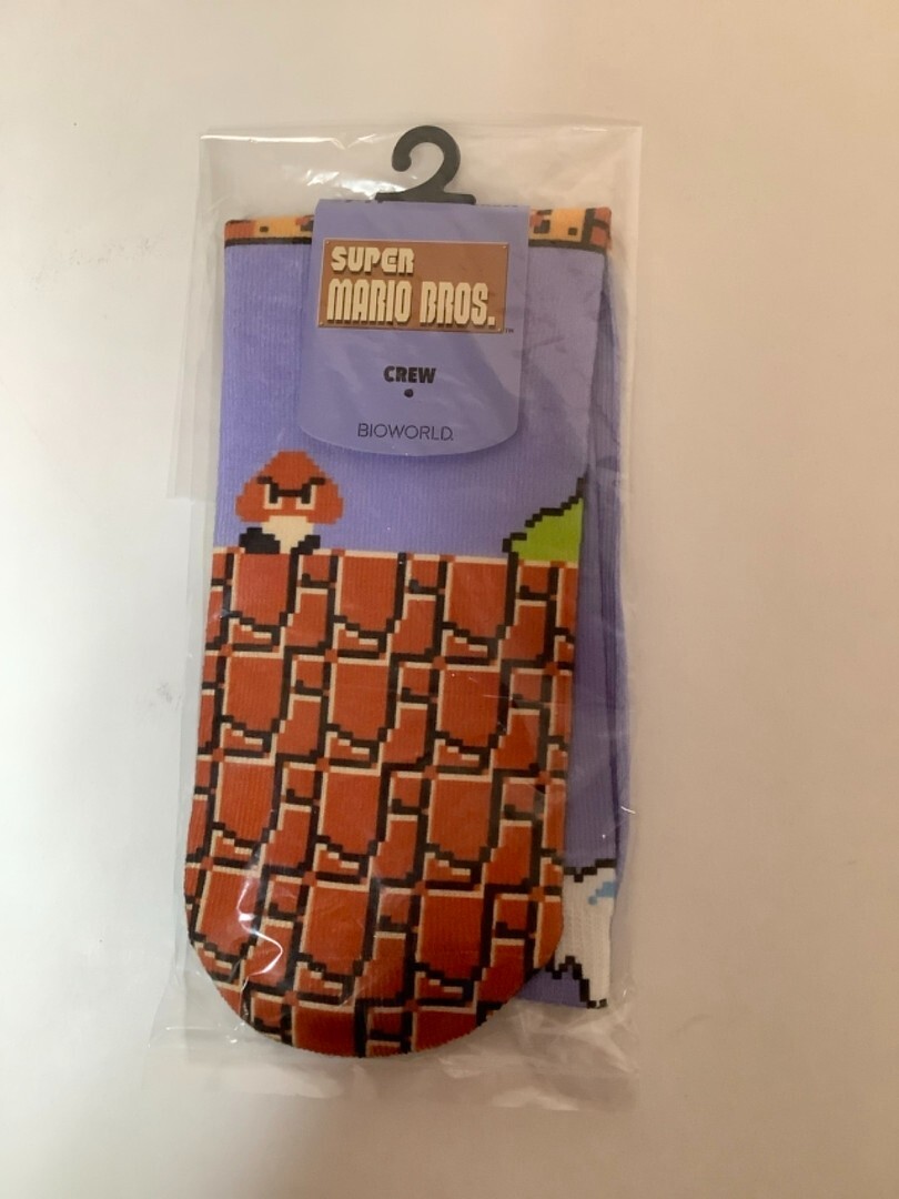 Bioworld Super Mario Bros 1 Crew Socks Nintendo NES Blue Shoe Size 9-11 Large
