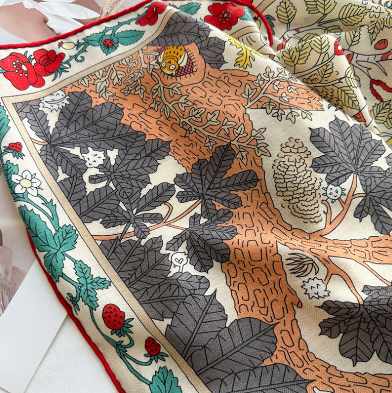 70 Cashmere 30 Silk Wrap Scarf Forest bird Print Double Face Print Shawl 53''
