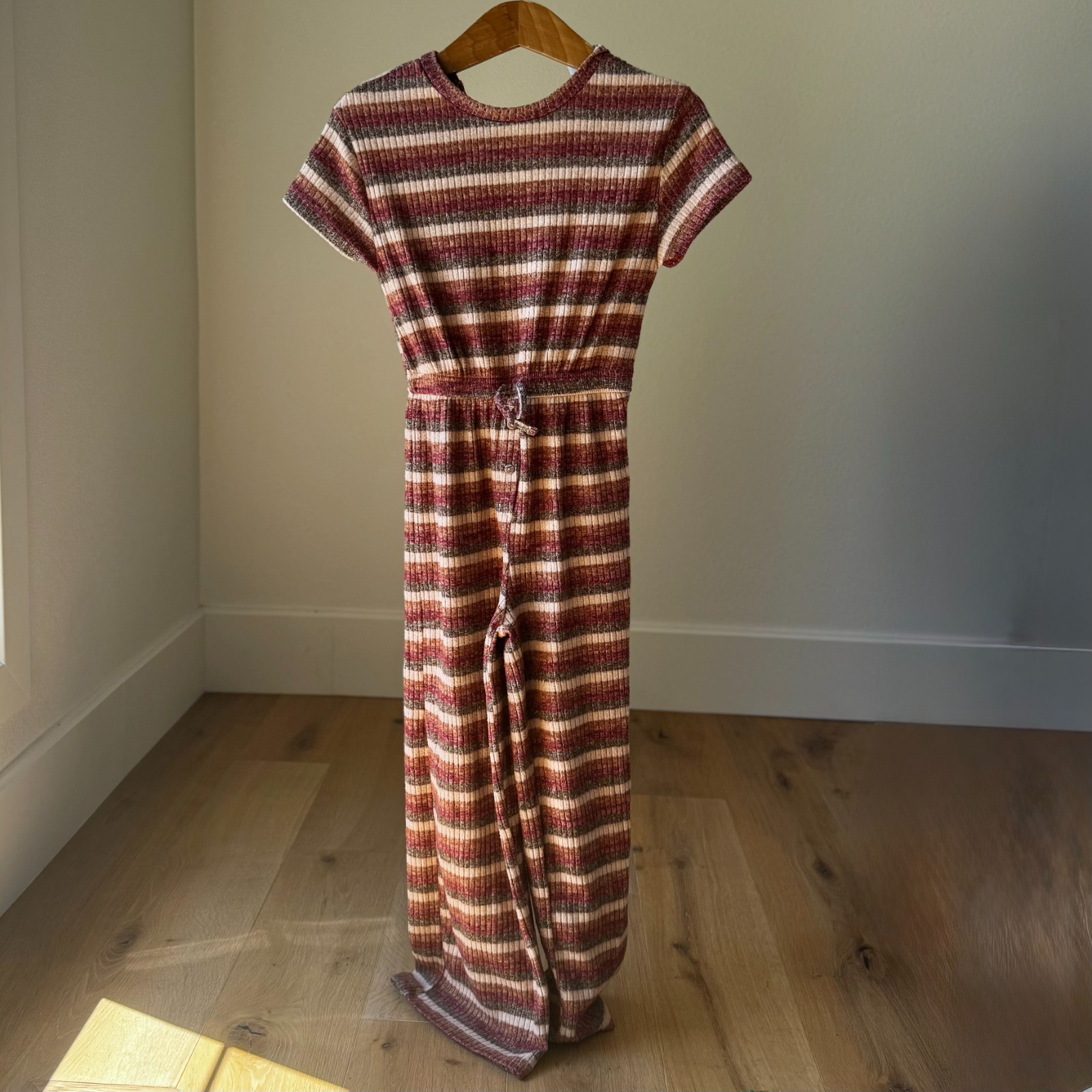 ZARA Girls Fall Romper 11/12 NWOT Soft Ribbed Knit Burgundy Striped