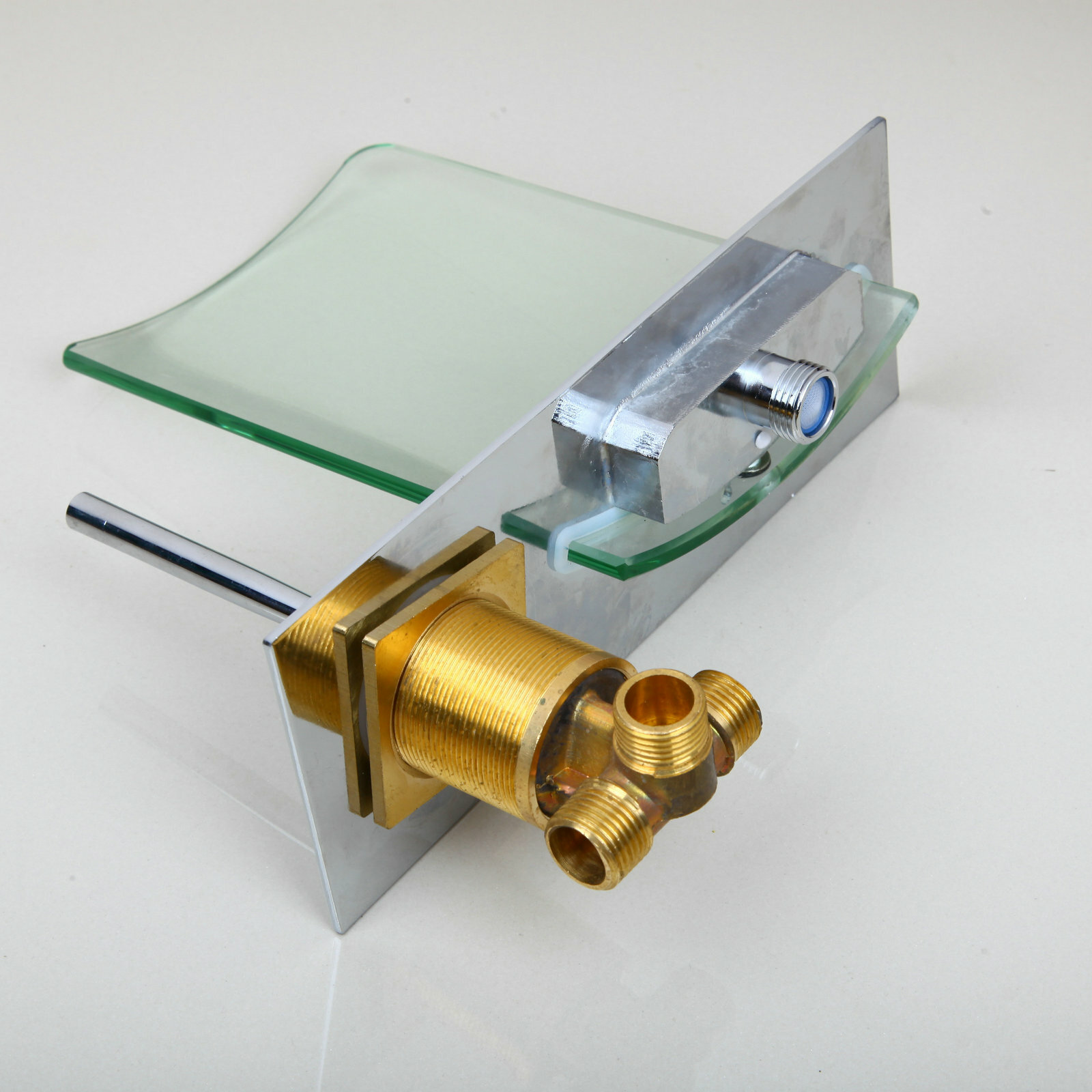 как выглядит US Brushed Nickel Bathroom Faucet Waterfall Spout Wall Mount Brass Mixer Tub Tap фото